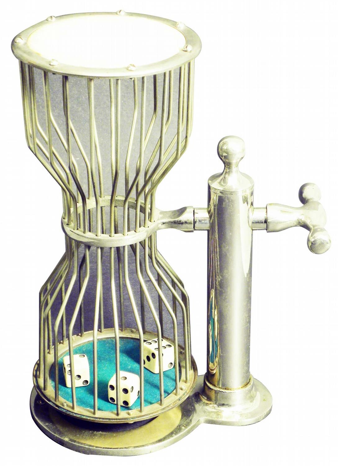 Nickel Plated Chuck-a-Luck with original dice. Good original condition. 11 inches tall.