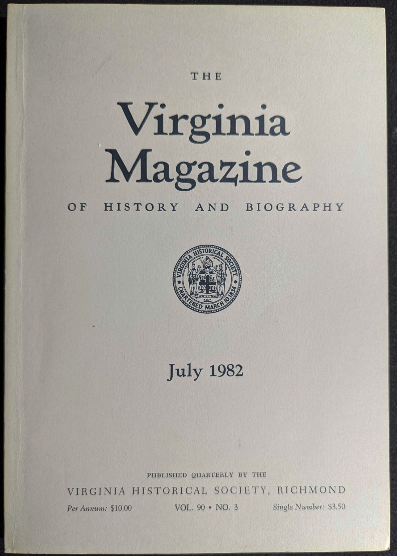 Nickell, Joe. DISCOVERED. THE SECRET OF BEALE'S TREASURE. Virginia Historical Society, Richmond. July, 1982. 8vo. (2), 283-394, (6) pages. Original tan printed card covers. The Virginia Magazine of History and Biography. Vol. 90 No.3. pp 310-324. First edition. Fine. Included as one of six main articles in this scholarly journal, is a very important but little-known monograph on the famous Beale Treasure, showing it is a hoax. Lot weight: 0 lbs 9oz. Subject(s): Buried Treasure.