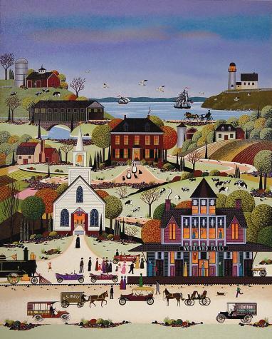 A master of detail, Nobou Watanabe applies meticulous definition to every face, tree and snowflake in his paintings. Watanabe was born in Japan and did not move to the United States until after he graduated college. His style incorporates the influence of his boyhood in Japan as well as "naif" styles and motifs.
