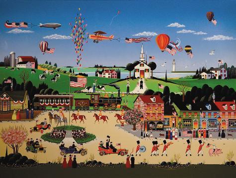 Offered here is a very colorful and captivating print in the "naif" (naive) style by the very popular artist Nobou "Nicky" Watanabe: Title: "President's Parade" 1989 Serigraph on paper Signed and numbered from a limited edition of 300, plus 100 Roman, and 50 APs 25 × 33 inches Excellent condition; never mounted, matted or framed Certificate of AuthenticityA master of detail, Nobou Watanabe applies meticulous definition to every face, tree and snowflake in his paintings. Watanabe was born in Japan and did not move to the United States until after he graduated college. His style incorporates the influence of his boyhood in Japan as well as "naif" styles and motifs.