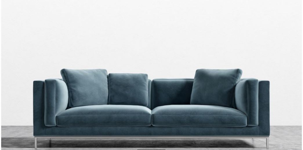 European Inspired Nico Sofa - Velvet Solstice Blue. Premium Goose Do. By Rove Concepts