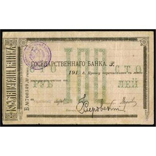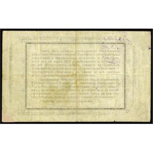 <style type="text/css"> body, td, th { font-family: Arial, Helvetica, sans-serif; font-size: 12px; color: #482424; margin: 0px; padding: 0px; } #header { background-image: url(http://www.bowersandmerena.com/ebay/images/template_v3_01.gif); clear: both; background-color: #590303; border-top-width: 2px; border-top-style: solid; border-top-color: #B38C4F; } #header #header_wrapper { height: 75px; clear: both; width: 800px; margin-right: auto; margin-left: auto; background-image: url(http://www.bowersandmerena.com/ebay/images/template_v3_03.gif); background-repeat: no-repeat; background-position: right; color: #F3EDCC; } #header #header_wrapper #header_logo { float: left; height: 75px; width: 444px; background-image: url(http://www.bowersandmerena.com/ebay/images/template_v3_02.gif); background-repeat: no-repeat; font-size: 10px; text-transform: capitalize; color: #B38C4F; } #header #header_wrapper #header_right { float: left; height: 75px; width: 356px; text-align: right; } #header #header_wrapper #header_right #headerLoginBtn { margin-bottom: 30px; } #header #header_wrapper #header_right input#txtSearch { color: #B49056; border: 1px solid #B49056; width: 175px; padding-top: 3px; padding-right: 3px; padding-bottom: 4px; padding-left: 3px; } #nav { height: 37px; background-image: url(http://www.bowersandmerena.com/ebay/images/template_v3_05.gif); clear: both; } #nav #nav_wrapper { height: 35px; width: 800px; margin-right: auto; margin-left: auto; border-left-width: 1px; border-left-style: solid; border-left-color: #B38C4F; } #nav #nav_wrapper a { padding-right: 15px; padding-left: 15px; border-right-width: 1px; border-right-style: solid; border-right-color: #B38C4F; height: 25px; padding-top: 10px; display: block; float: left; text-decoration: none; font-weight: bold; color: #5D0303; } #nav #nav_wrapper a:hover { color: #B38C4F; } #nav #nav_wrapper #search { float: right; padding-top: 7px; } #nav #nav_wrapper #search #txtSearch { font-family: Arial, Helvetica, sans-serif; font-size: 10px; text-transform: uppercase; color: #D2AE75; border: 1px solid #B38C4F; padding: 3px; } #content_bgd { background-image: url(http://www.bowersandmerena.com/ebay/images/template_v3_09.gif); background-repeat: repeat-y; background-position: center; padding-top: 15px; padding-bottom: 15px; background-color: #FBFBDB; } #content_wrapper { clear: both; height: auto; width: 800px; margin-right: auto; margin-left: auto; } .LotDetailWhite { line-height:normal; font-size:13px; font-family: arial,helvetica,sans-serif; color: White; font-weight: bold; } .LotDetailInformation { line-height:normal; font-size: 13px; font-family: arial,helvetica,sans-serif; } .LotDetailMessage { line-height:normal; font-size: 13px; font-family: arial,helvetica,sans-serif; color: red; } } tr.HeaderAuctionTitle td { color: #000000; font-weight: bold; padding: 2px; background-image: url(http://www.bowersandmerena.com/ebay/images/template_v3_05.gif); background-repeat: repeat-x; border-bottom-width: 1px; border-bottom-style: solid; border-bottom-color: #B38C4F; } table.AuctionSummary a, table.AuctionSummary a:link, table.AuctionSummary a:visited { color: #0000FF; text-decoration: none; } } td.tableHeaderLeft { border-left-width: 1px; border-left-style: solid; border-left-color: #B38C4F; } td.tableHeaderRight { border-right-width: 1px; border-right-style: solid; border-right-color: #B38C4F; } td.tableCellMiddle { border-left-width: 1px; border-left-style: solid; border-left-color: #B38C4F; border-right-width: 1px; border-right-style: solid; border-right-color: #B38C4F; padding: 5px; } tr.footer td { border-top-width: 1px; border-top-style: solid; border-top-color: #B38C4F; } </style> </head> <body> <div id="header"> <div id="header_wrapper"> <div id="header_logo"> </div> <div id="header_right"> </div> </div> </div> <div id="nav"> <div id="nav_wrapper"> <a href="http://www.bowersandmerena.com">Our eBayLive Auctions</a> <a href="#PaymentInfo">Payment Information</a> <a href="#ShippingInfo">Shipping Information</a> <a href="#About">About Bowers and Merena</a> </div> </div> <div id="content_bgd"> <div id="content_wrapper"> <table width="100%" border="0" cellpadding="5" cellspacing="0" class="AuctionSummary"> <tbody> <tr class="HeaderAuctionTitle" style="height: 25px;"> <td align="left" class="tableHeaderLeft" > </td> <td align="center" class="tableHeaderRight"> <span style="font-size: large;">Lot #2310. East Siberia. Nicolaevsk-on-Amur, 1918 Checks Issue.</span> </td> </tr> <tr> <td colspan="3" class="tableCellMiddle"> 1918, 100 Rubles, P-S1288, Fine to VF condition. The city was occupied by British and Americans until 1918 and then under Japanese control until 1922.