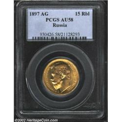 Nicolas II Gold 15 Roubles 1897, Y65, AU58 PCGS, much above average for this unusual denomination. I