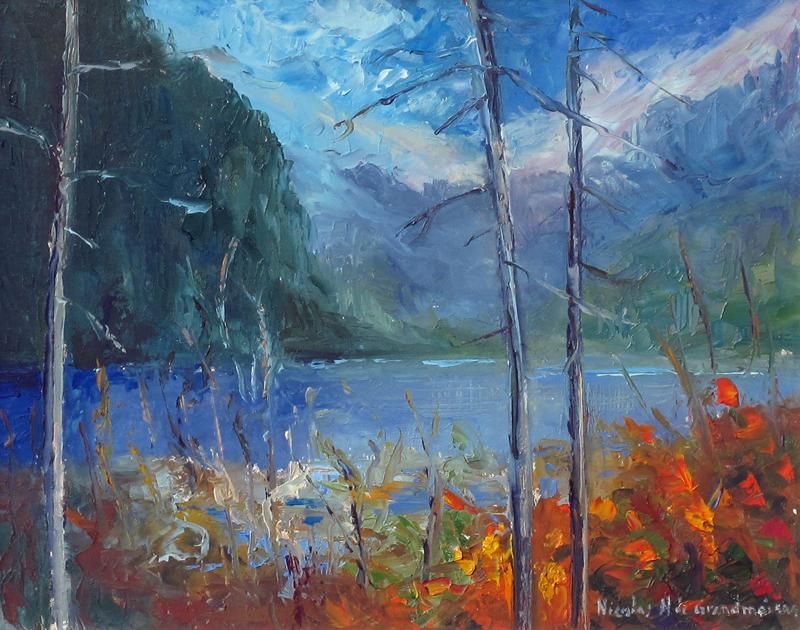 AUTUMN LANDSCAPE WITH A MOUNTAIN LAKE