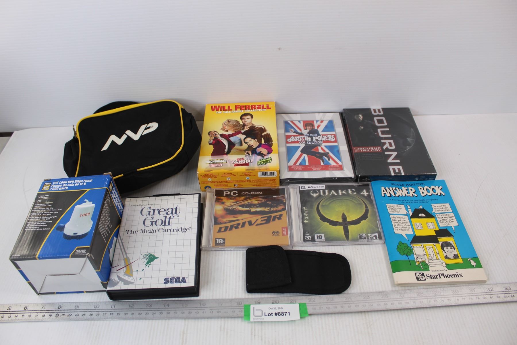 Nicole Patrons Answer Book, Austin Powers Collection DVDs, Power Fish 12V 1000 GPH Bilge Pump, Misc.