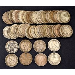 Canada 25¢, 1918, 61 coins, no problem collectible pieces. Grading F-VF.
