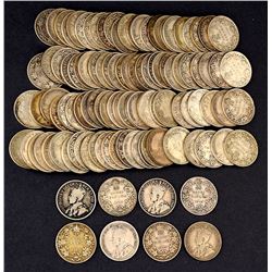 Canada 25¢, 1919, 110 coins, grading VG-VG+, nice collectible pieces, none damaged.