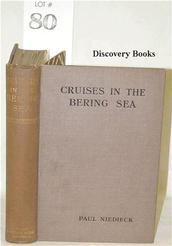 Niedieck, Paul. CRUISES IN THE BERING SEA. BEING RECORDS OF FURTHER SPORT AND TRAVEL. London: Roland Ward 1909 xv,252pp. 73 plates, folding map in pocket. Original gray cloth, lettered in black on front and in gilt on spine. Spine just slightly dull, else very good - clean & tight.