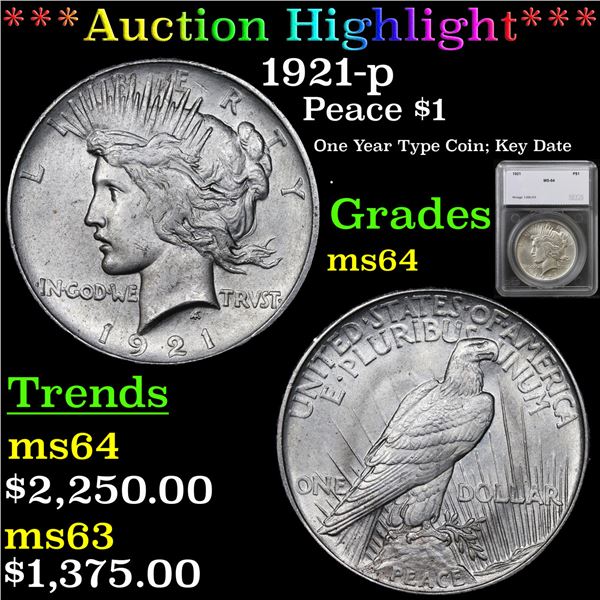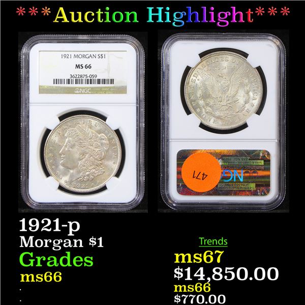 ***Auction Highlight*** NGC 1921-p Morgan Dollar $1 Graded ms66 by NGC.