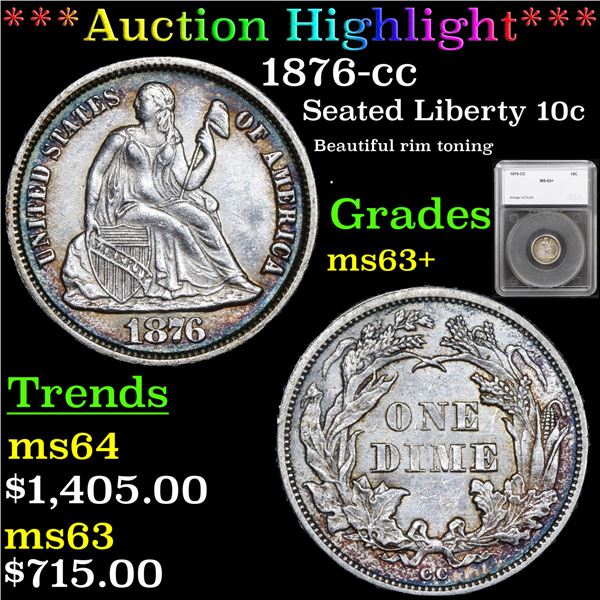 ***Auction Highlight*** 1876-cc Seated Liberty Dime 10c Graded ms63+ by sEGS. 0
