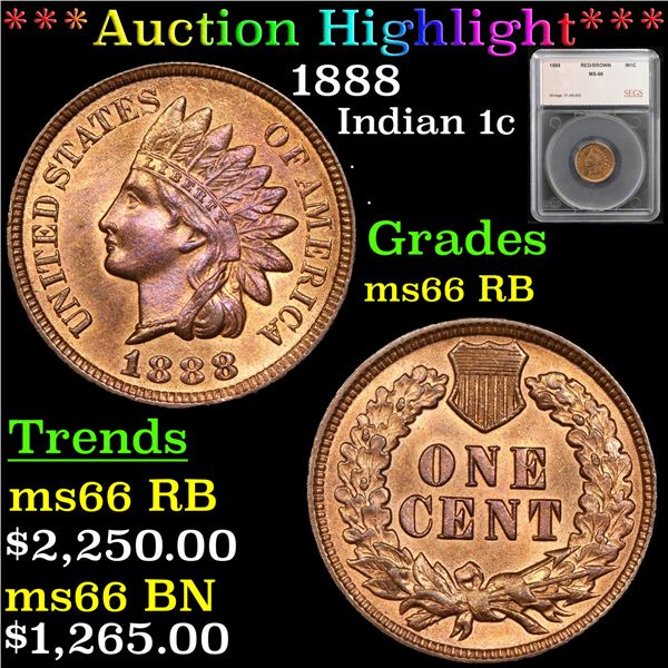 ***Auction Highlight*** 1888 Indian Cent 1c Graded ms66 RB by SEGS (fc)