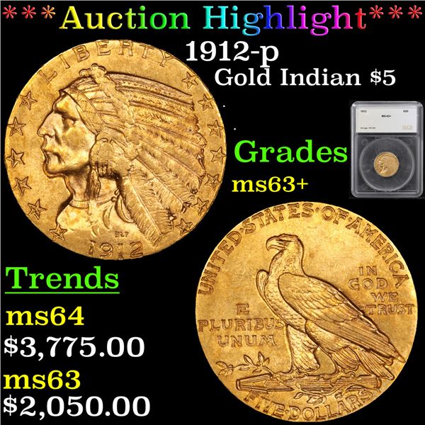 ***Auction Highlight*** 1908-p Gold Indian 2.5 Graded ms62 by SEGS.