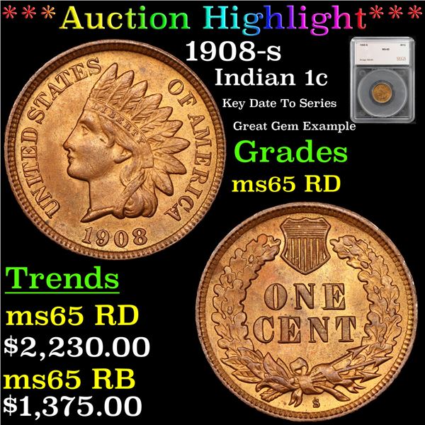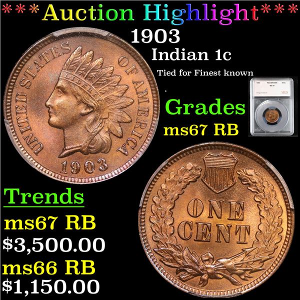 ***Auction Highlight*** 1902 Indian Cent 1c Graded ms66+ RB by SEGS.