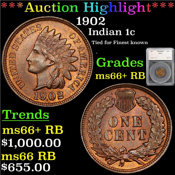 ***Auction Highlight*** 1902 Indian Cent 1c Graded ms66+ RB by SEGS (fc)