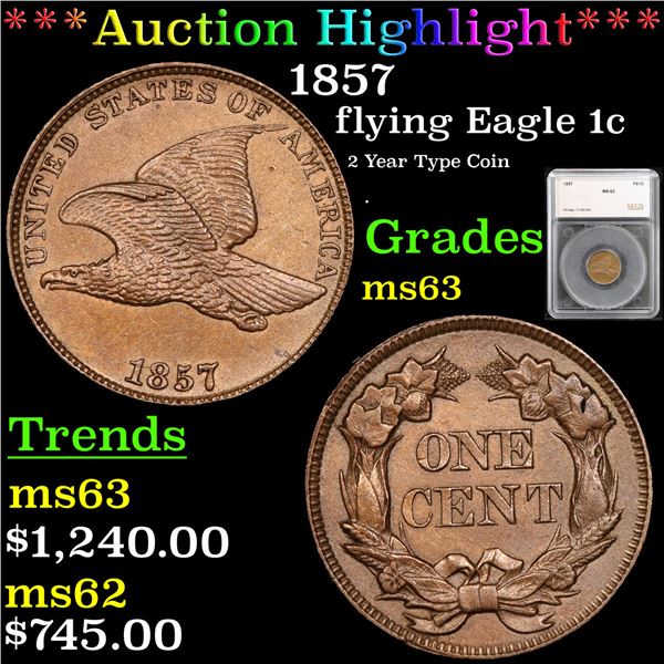 ***Auction Highlight*** 1857 Flying Eagle Cent 1c Graded ms63 by SEGS.