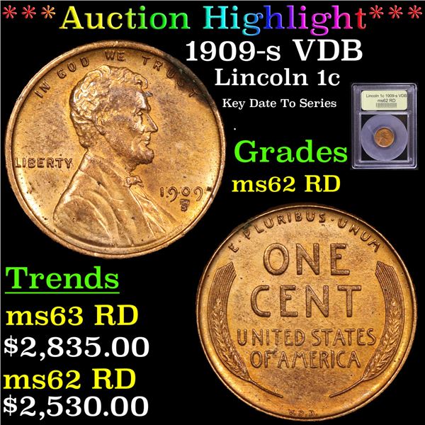 ***Auction Highlight*** 1909-s VDB Lincoln Cent 1c Graded Select Unc RD by USCG. Key Date to the series and a true numismatic rarity and perhaps he m