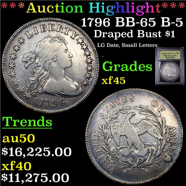 ***Auction Highlight*** 1796 Draped Bust Dollar BB-65 B-5 $1 Graded xf+ by USCG (fc)
