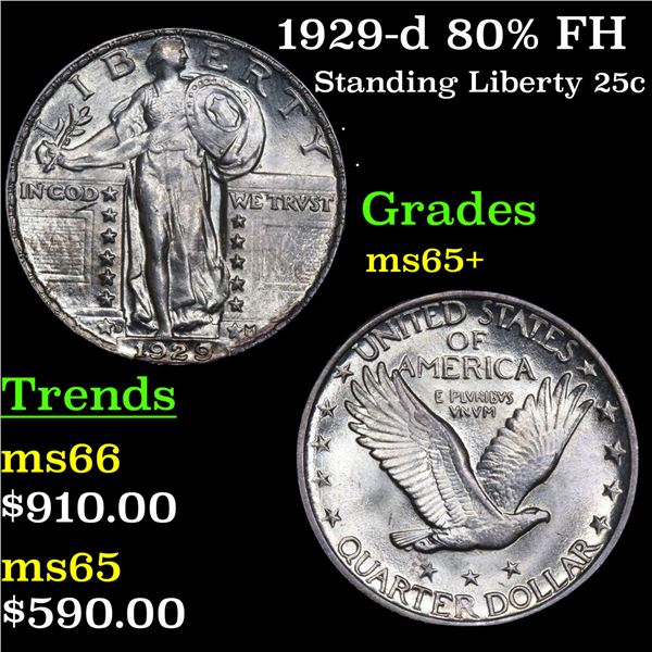 1929-d 80% FH Standing Liberty Quarter 25c grades gem+ unc