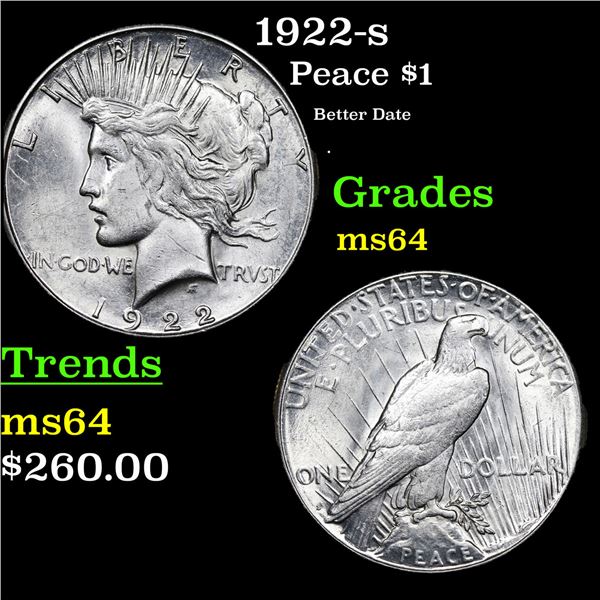 1922-p Peace Dollar $1 Grades GEM Unc.