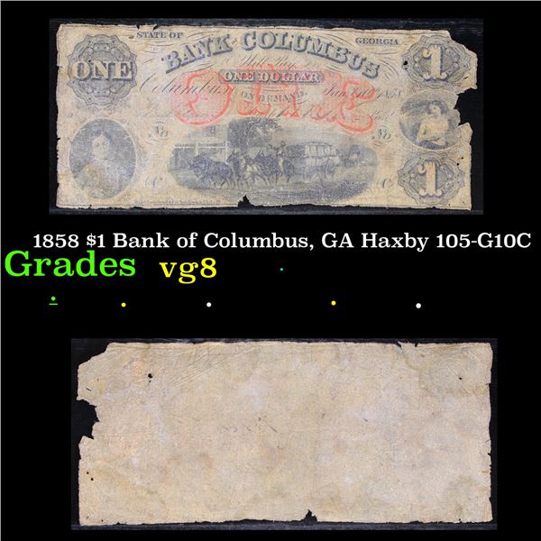 1858 $1 Bank of Columbus, GA Haxby 105-G10C Grades vg, very good.