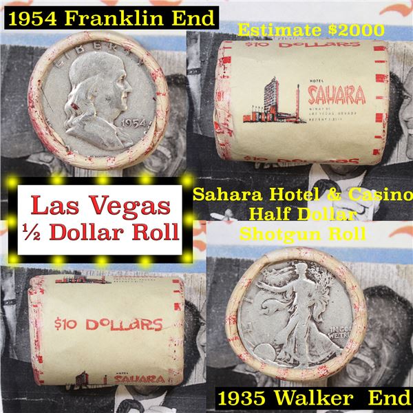*Highlight* Old Casino 50c Roll $10 Halves Las Vegas Casino Sahara 1935 Walker & 1954 Franklin Ends Casino Half Roll