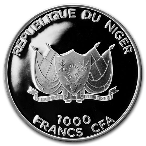 Niger 2012 Proof Silver Predator Hunters - Side Striped **|**|** Year: 2012 ; Mint Mark: Proof ; Denomination: 1,000 Francs ; MSRP: $100
