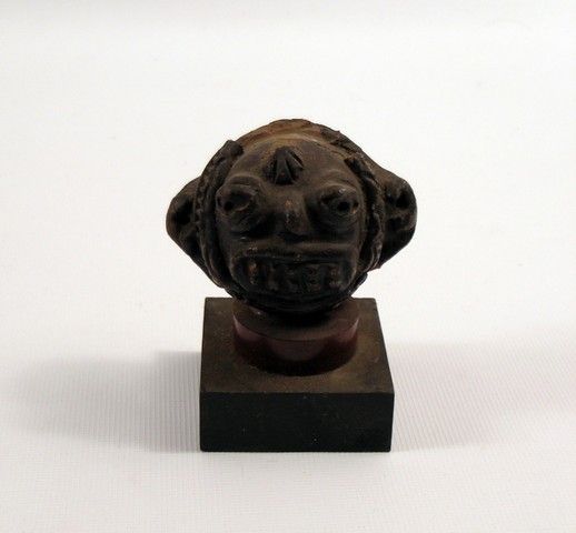Night At The Museum Small Carved Head Prop - New York's legendary Natural History Museum has never been the same after the smash-hit "Night at the Museum" (2006) with Ben Stiller and a truly all-star cast. Housing one of the largest collections of "natural" artifacts in the world, (some dormant, others that seem to come to life), this is one of them used as a background prop in the production. It's a small primitive "Inca-style" head statue. (Approx. 3" tall).