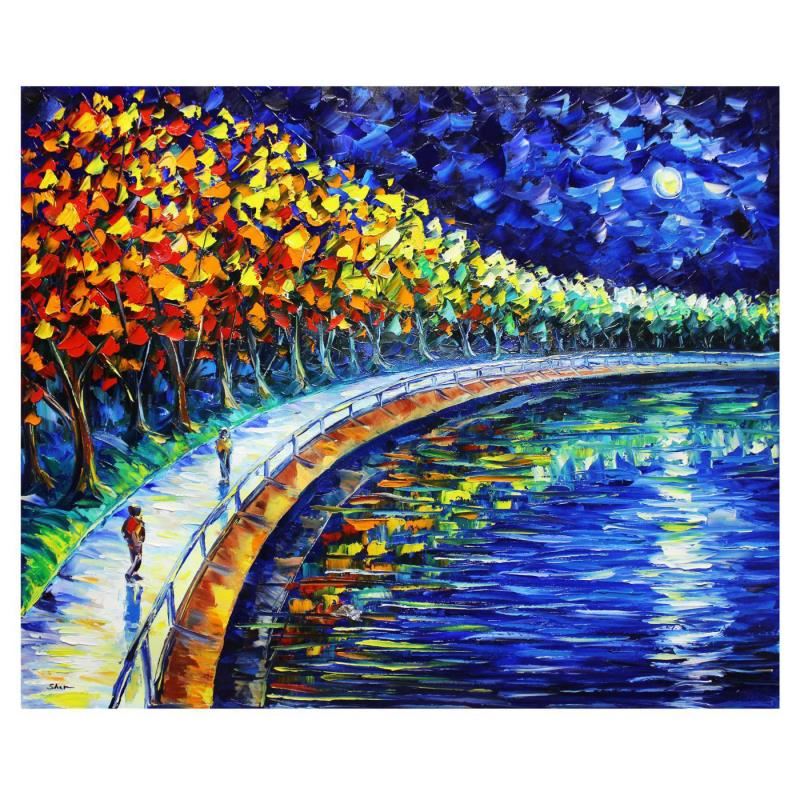 "Night By The River" is an original Oil on Canvas by Svyatoslav Shyrochuk. The piece is hand signed and comes with a Certificate of Authenticity. Measures approximately 30" x 24".