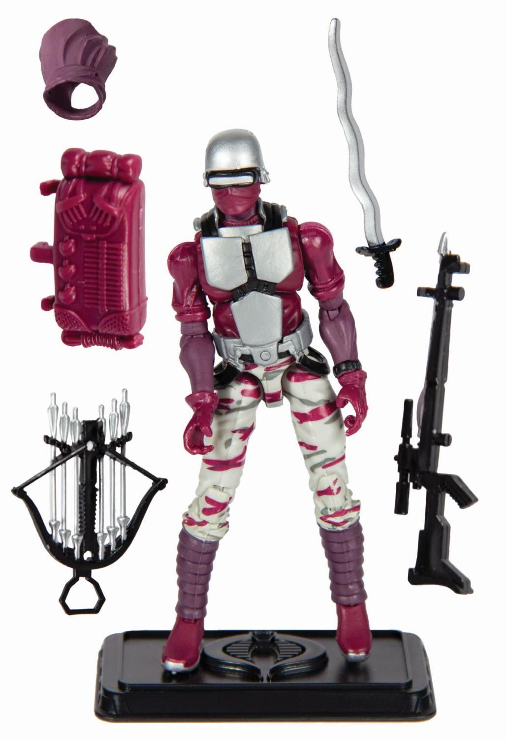 (Hasbro, 2009) An original final engineering prototype Night Creeper action figure created for a cancelled Hasbro G.I. Joe 2009 Comic Pack. The figure was ultimately released as part of the Defense of Cobra Island boxset, however, this prototype is accompanied the original factory bag hand-marked in ink indicating it was originally attended for the "#6397" Comic Pack assortment. All of the accessories included with the released boxset version are present: a backpack, a crossbow, a hood, a kris sword, and a display stand. Measuring 3.75" tall, the prototype action figure is in fine condition with minimal wear.