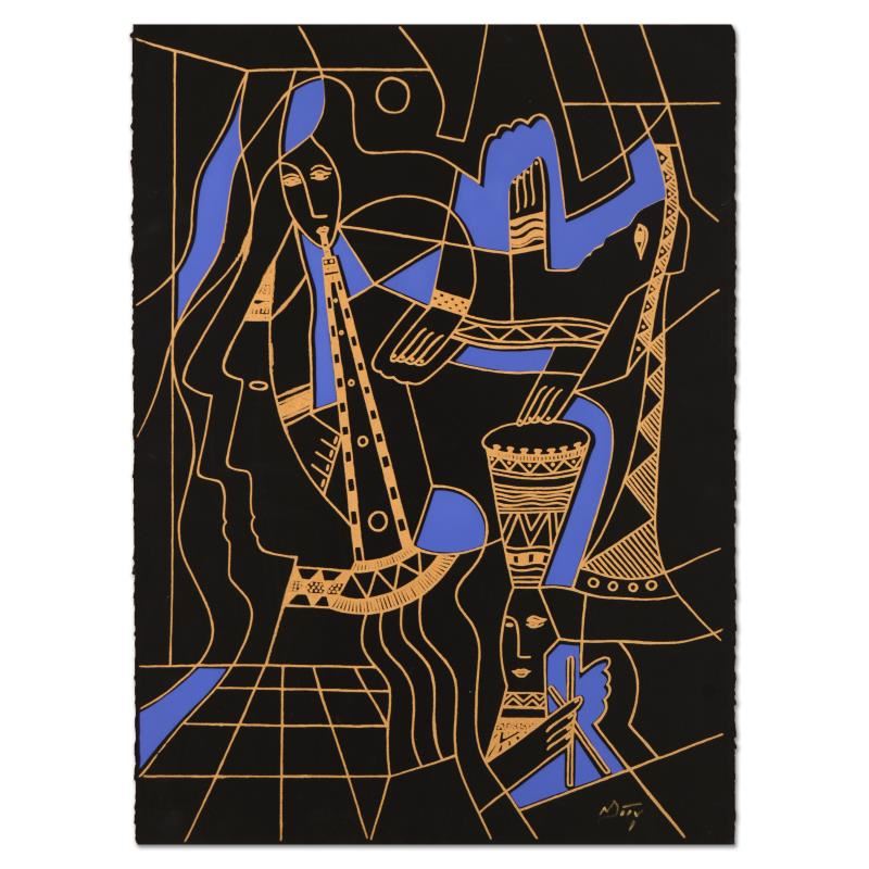 "Night Music" is a serigraph on paper by Neal Doty (1941-2016), hand signed by the artist. Includes Letter of Authenticity. This piece comes from Neal Doty's personal collection and was received directly from Doty's Estate. Measures approx. 22" x 30" (image). Due to the character of the paper and age of this piece, there may be very minor scuff marks on the paper.