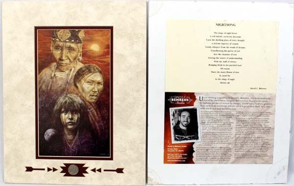 Night Song Print by David C. Behrens. Custom mat embellished with Indian Head Nickle. Visual measurements are 10" x 6" but overall matted size is 14" x 11". Comes with provenance.