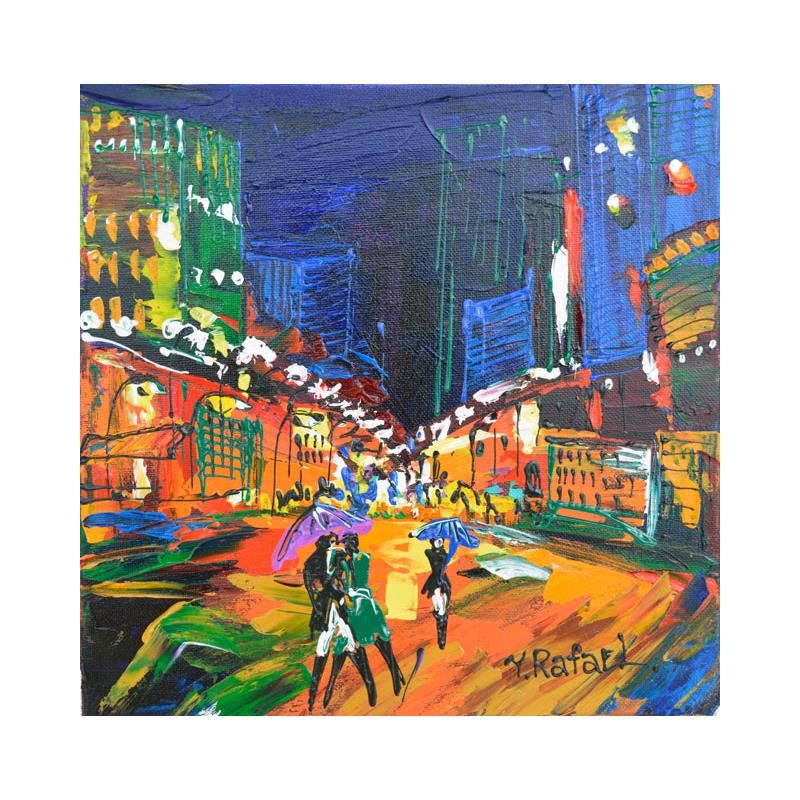 "Night Time Lights" is an oringal painting, acrylic on canvas, by Yana Rafael. Hand signed by the artist, this piece is accompanied by certificate of authenticity. Measures approximate 12" x 12"