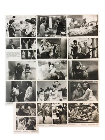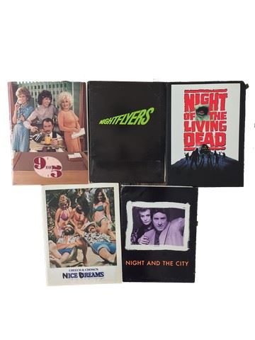 Collection of 5 press kits with black and white publicity stills included, sized mainly 8"x10" from various movie studios. (1980's-90's). From 20th Century Fox " Nine To Five" (1980) starring Jane Fonda as Judy Bernly, Lily Tomlin as Violet Newstead, and Dolly Parton as Doralee Rhodes, includes 4 stills. From New Century Vista Film Company "Night Flyers" (1987) starring Catherine Mary Stewart as Miranda, Michael Praed as Royd Eris, and Annabel Brooks as Eliza, includes 7 stills. From Columbia Pictures "Night Of the Living Dead" (1990) starring Tony Todd as Ben, Patricia Tallman as Barbara Todd, and Tom Towles as Harry Cooper, includes 3 stills. From Columbia Pictures "Cheech and Chongs Nice Dreams" (1981) starring Cheech Marin as Cheech, Tommy Chong as Chong, and Sandra Bernhard as Girl Nut, includes 9 stills. From 20th Century Fox Night And The City" (1992) starring Robert De Niro as Harry Fabian, Jessica Lange as Helen Nasseros, and Cliff Gorman as Phil, includes 8 stills.