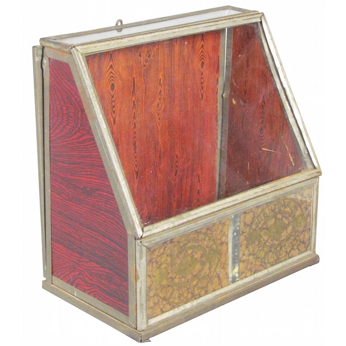Nightingale Miniatures Cigar Display Case. Glass and tin. Some fading to front label otherwise good condition. 8 1/2 X 8 1/2 X 5 inches.