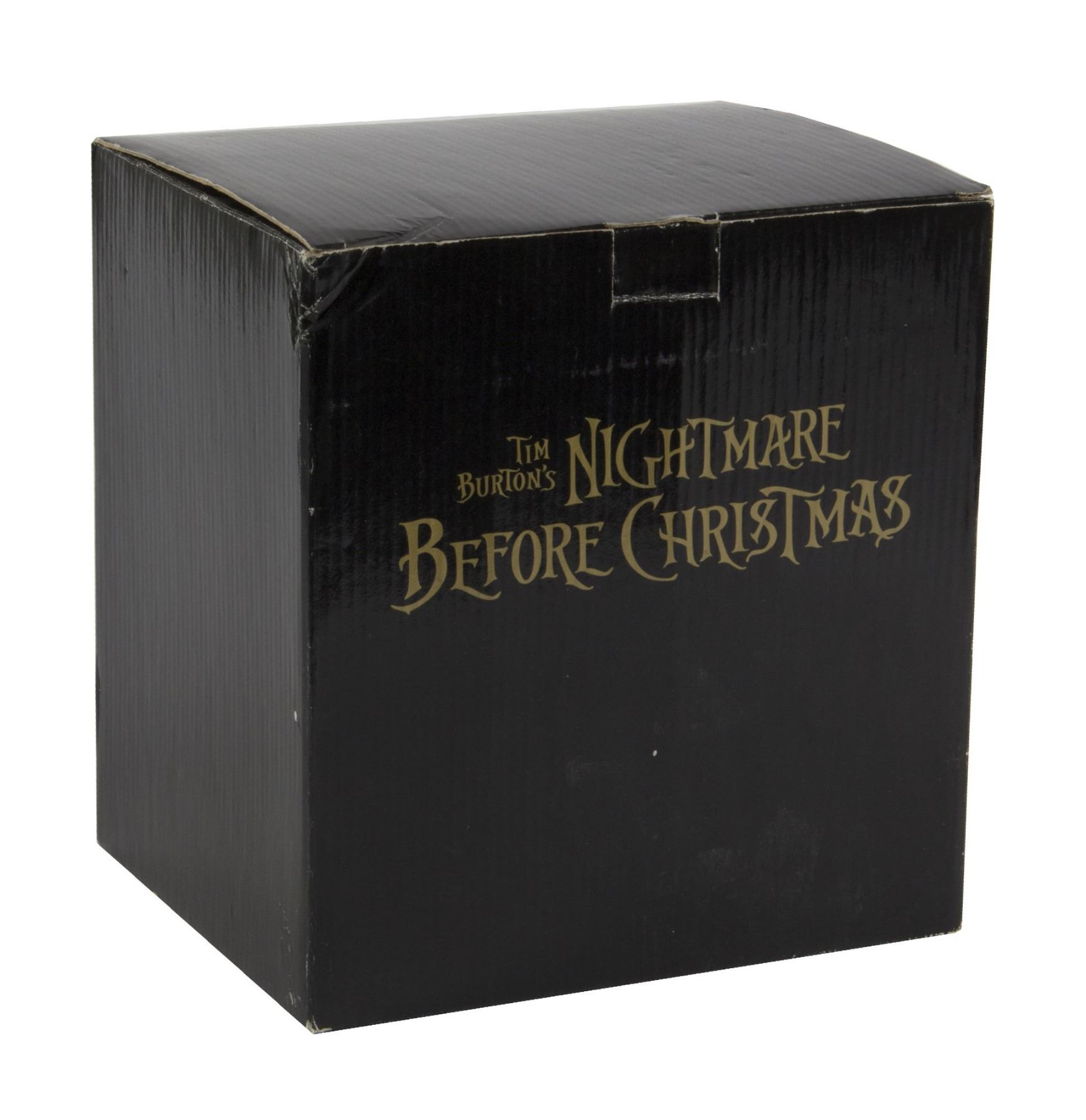 (Disneyland, c.2001) An exclusive souvenir figure of Jack, Sally, and Zero in a Doom Buggy sold at the "Nightmare Before Christmas Enchanted Evening", a preview event for the Haunted Mansion Holiday setup. This miniature Doom Buggy features Jack and Sally in the car, with Zero floating alongside. The figure comes with a stand designed after familiar Haunted Mansion imagery. When assembled, the figure measures 5.75"x7.25" and 5" deep, and comes in its original box and packaging. The condition is very good, with some minor scuffing to the buggy and some small scratches to the paint on the stand's base.