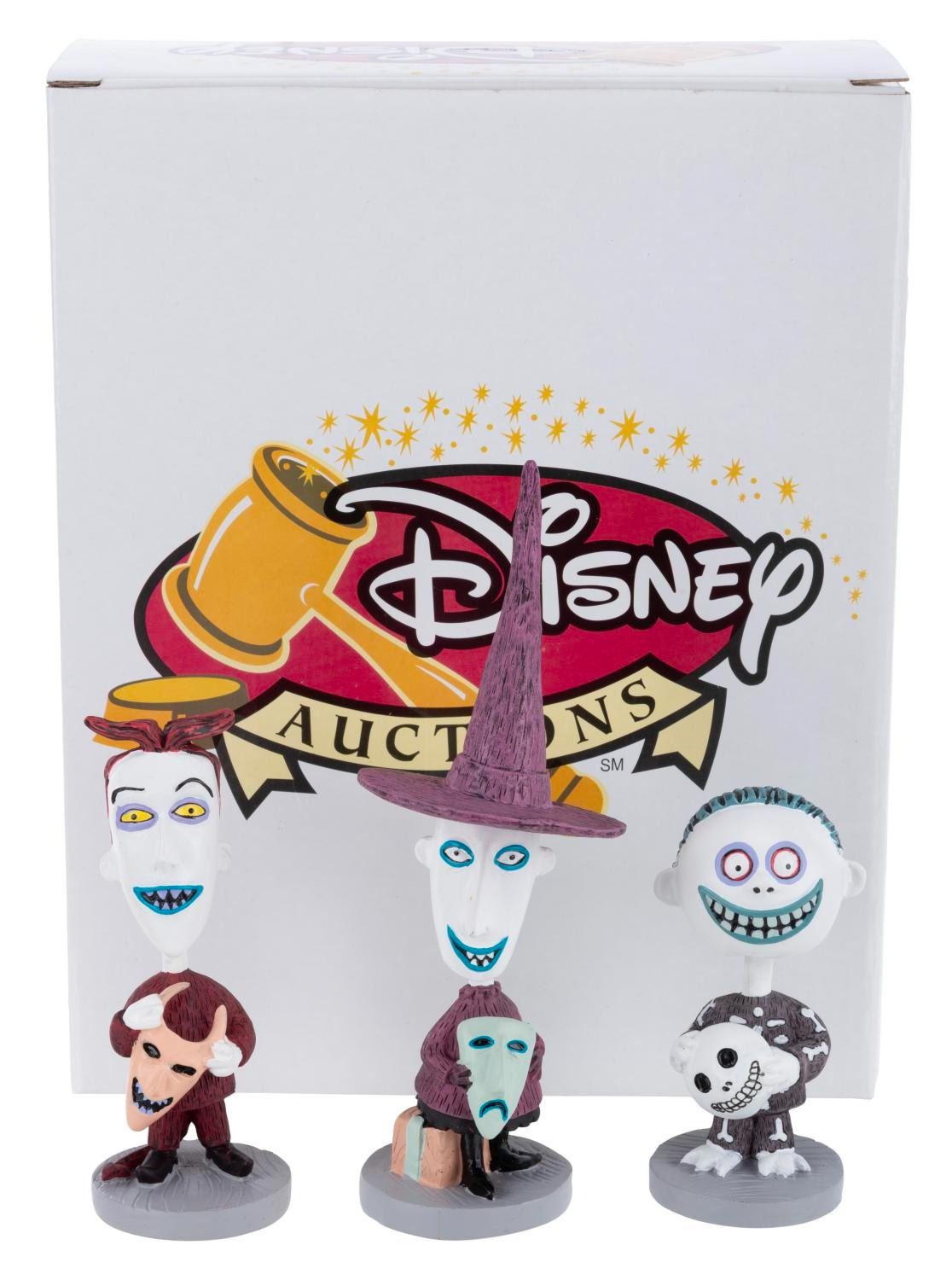 (Disney Auctions, 2000s) A very rare set of “Nightmare Before Christmas” Lock, Shock, and Barrel “Bobble Wobbles.” Released in a limited edition of only 300 sets, the resin bobble head figures stand from 3.5” to 6.5” tall and are in fine as-new condition with their original box.
