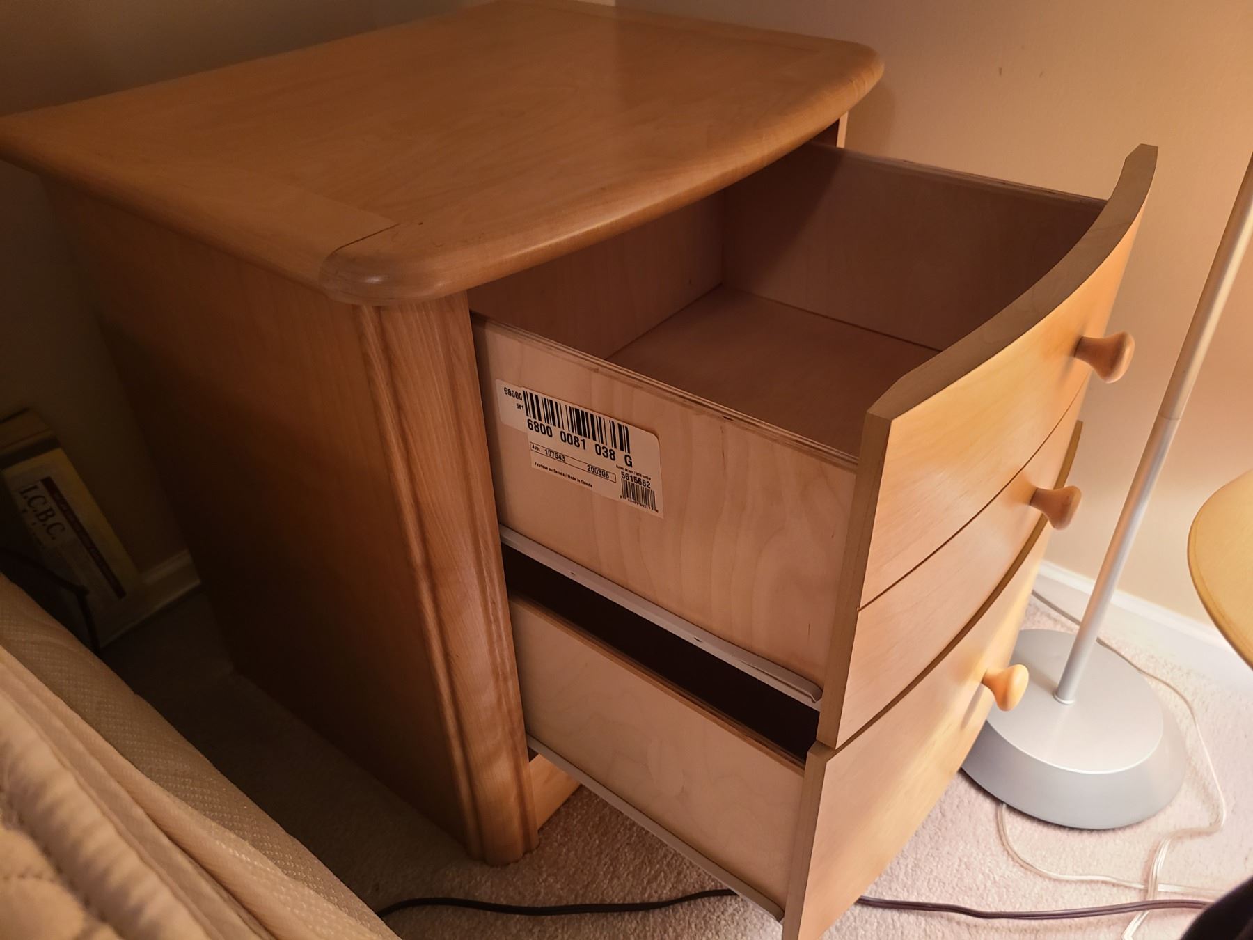 Nightstand 22X18X22 3 Drawers. Pickup at 10am