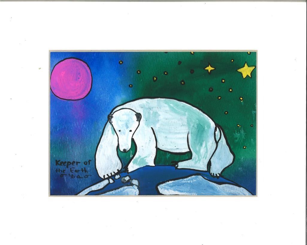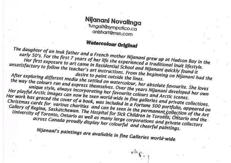 Nijanani Novalinga Original Watercolour - "Keeper of The Earth" 9 x 11" Matted approx. Hand Signed, Artist Has Paintings all Over The World.