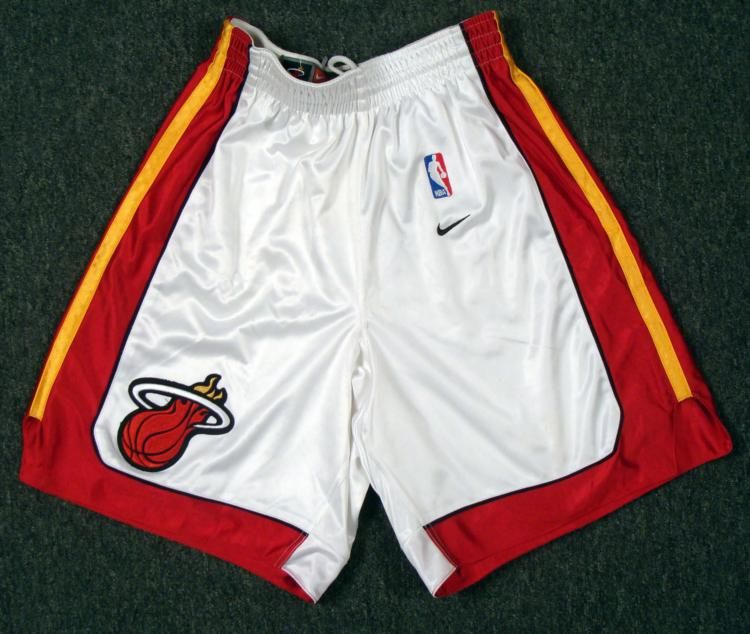 With the revitalized Miami Heat marking there mark on this season, starring Wade, Bosh, and James, they will stop at nothing to get back to the promise land. Both James and Bosh have yet to win the big one, however, it appears that they want it more than ever this year. Offered here is an authentic pair of Miami Heat basketball shorts from Nike. They are size 34, in the Heat colors, and has the Heat, Nike, and NBA logo on the front. The shorts come with its original tags and is in very good condition. The shorts could go through a good wash prior to using because there are some slight stains to the both sides. This is your chance to own an authentic pair of Miami Heat shorts prior the Wade, James, and Bosh era, so act now because these shorts won't be around long... *
