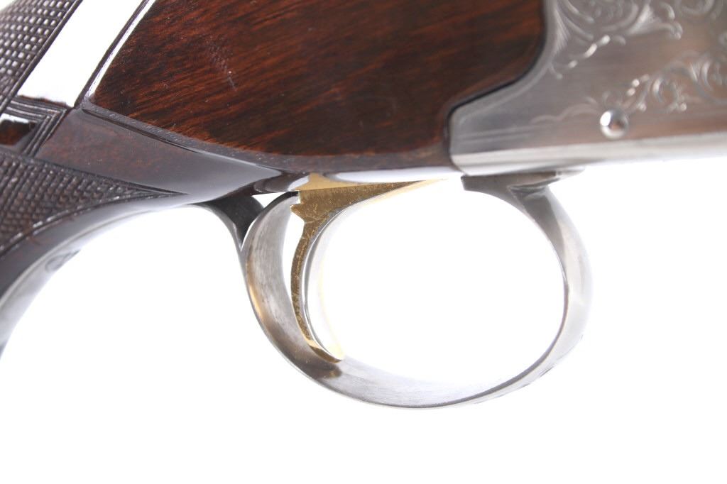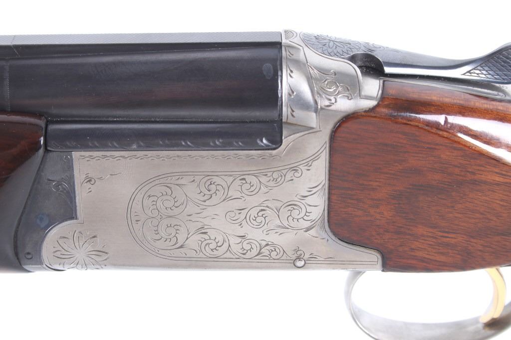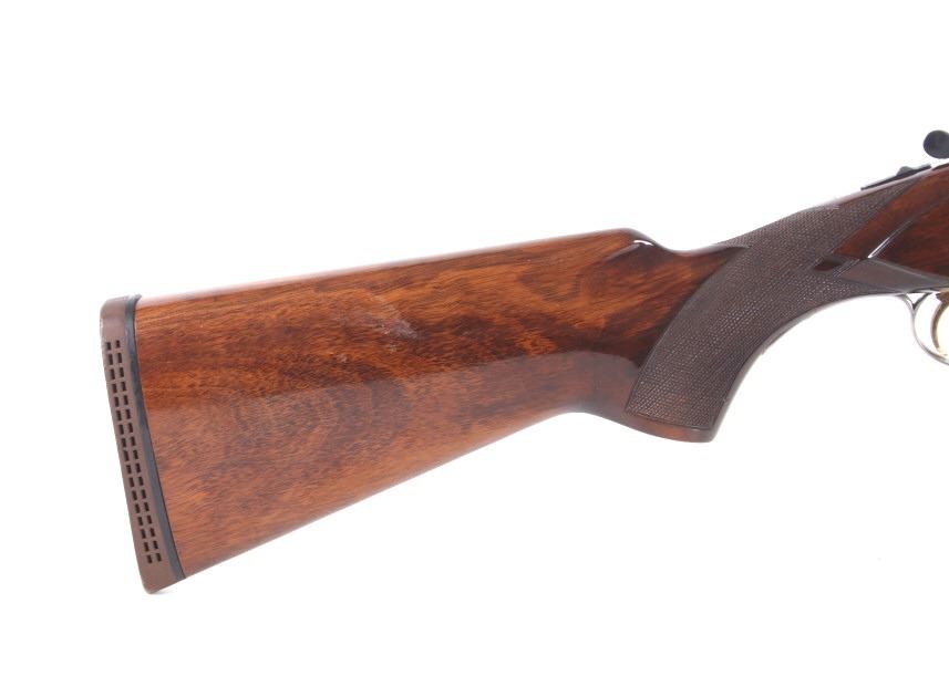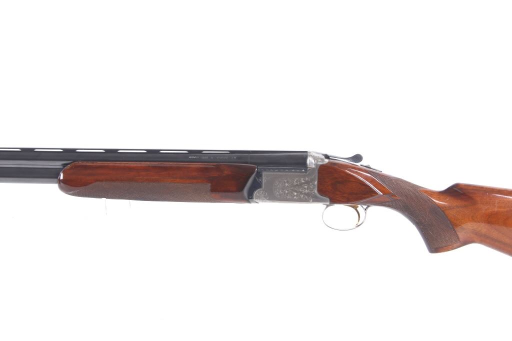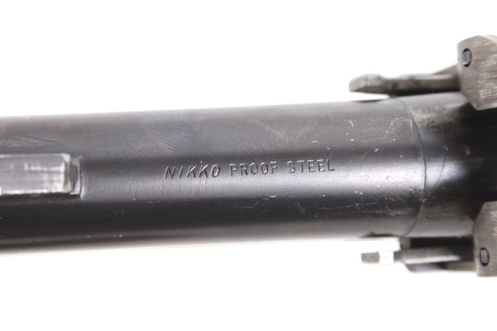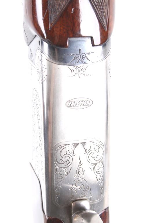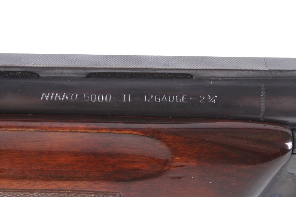 Featured in this lot we have a Nikko model 5000 II over/under double barreled shotgun chambered in 12 gauge. The shotgun displays two 30" long barrels, etched frame, and walnut stock. The receiver is etched with floral vine pattern across the sides and bottom. The left side of the barrel is marked "Nikko 5000 - II - 12 Gauge - 2 3/4" with the bottom of the frame marked "NIKKO". The shotgun shows good condition with a tight action and good trigger. Serial Number: 623975. This is a modern firearm and requires a FFL transfer or NICS background check.
