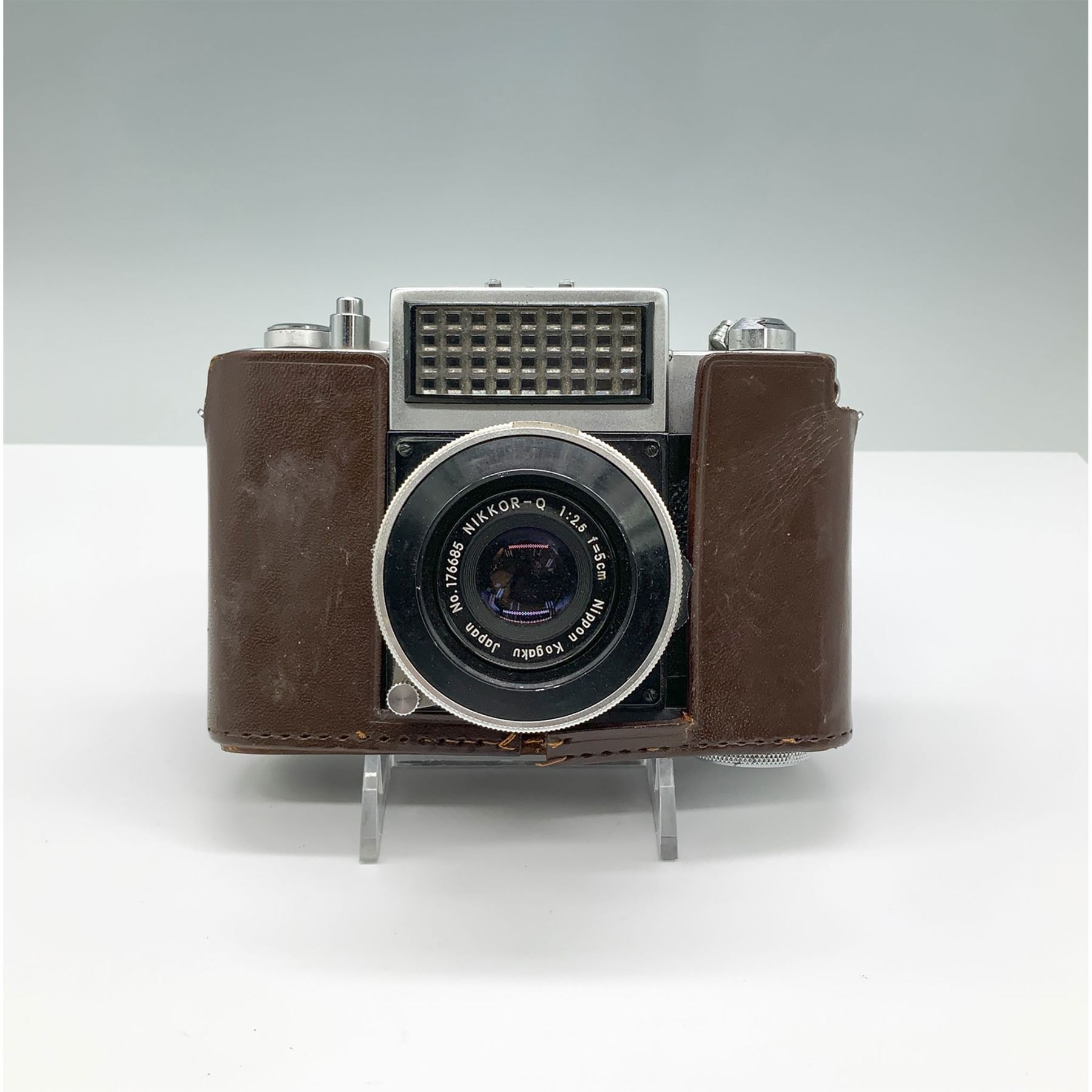 This listing features a vintage Nikkorex 35mm SLR camera, manufactured by Nippon Kogaku Tokyo, now widely known as Nikon Corporation. This model comes equipped with the Nikkor-Q 5cm f/2.5 lens, a hallmark of Nikon’s early lens craftsmanship. Nippon Kogaku Tokyo, established in 1917, earned its reputation as a global leader in optical instruments by creating precision lenses and cameras that remain cherished by photographers and collectors worldwide. The Nikkorex camera, produced in the 1960s, was designed to be a simpler, affordable entry into the SLR camera market while maintaining Nikon's high-quality standards. The Nikkor-Q lens features a 5cm focal length and a maximum aperture of f/2.5, making it suitable for a variety of lighting conditions and compositions. Includes brown leather case.