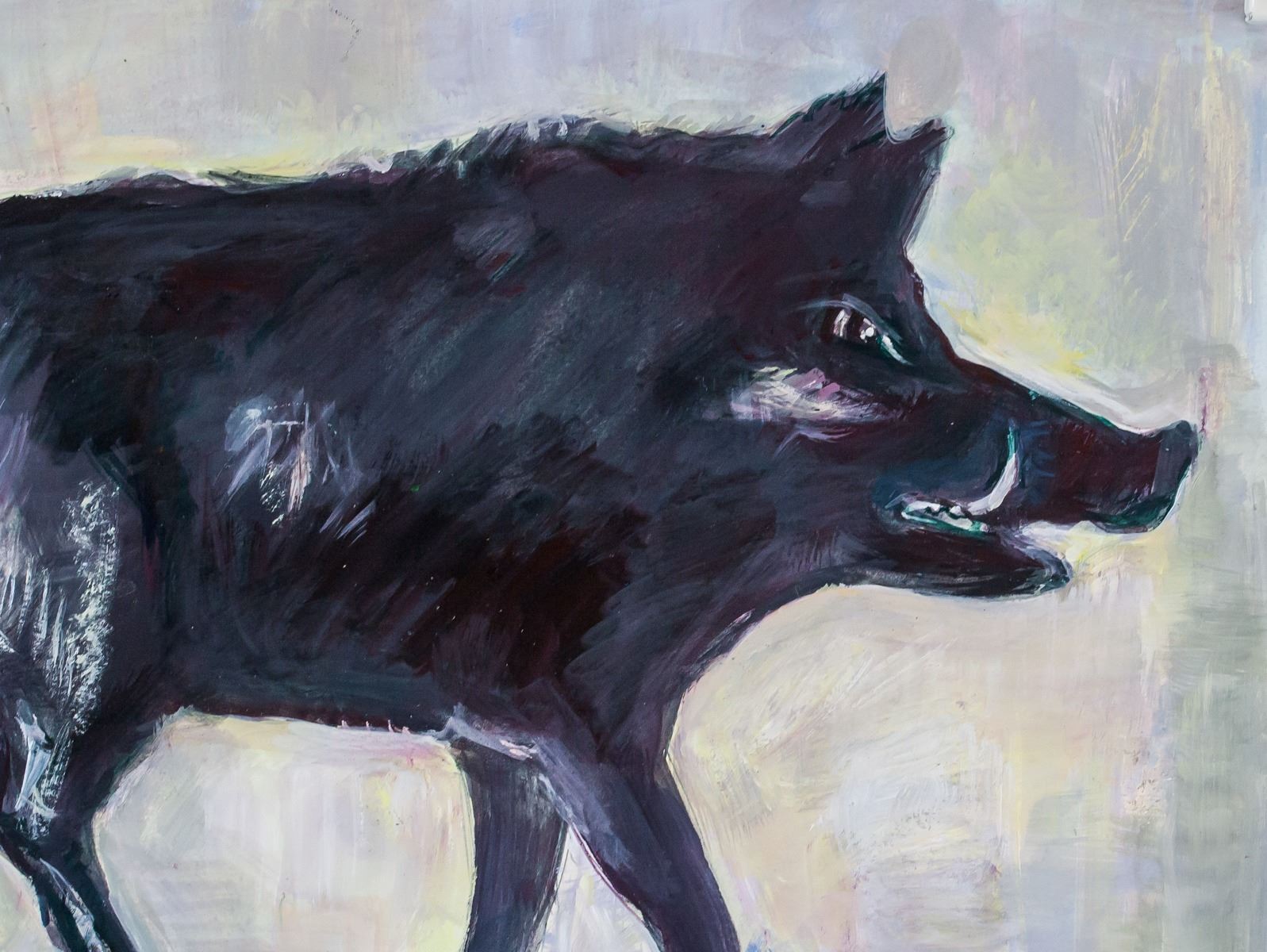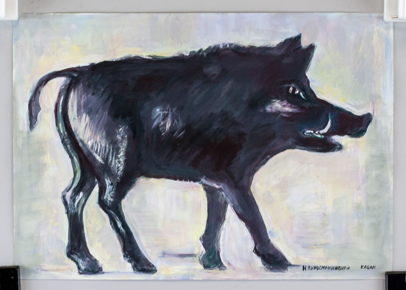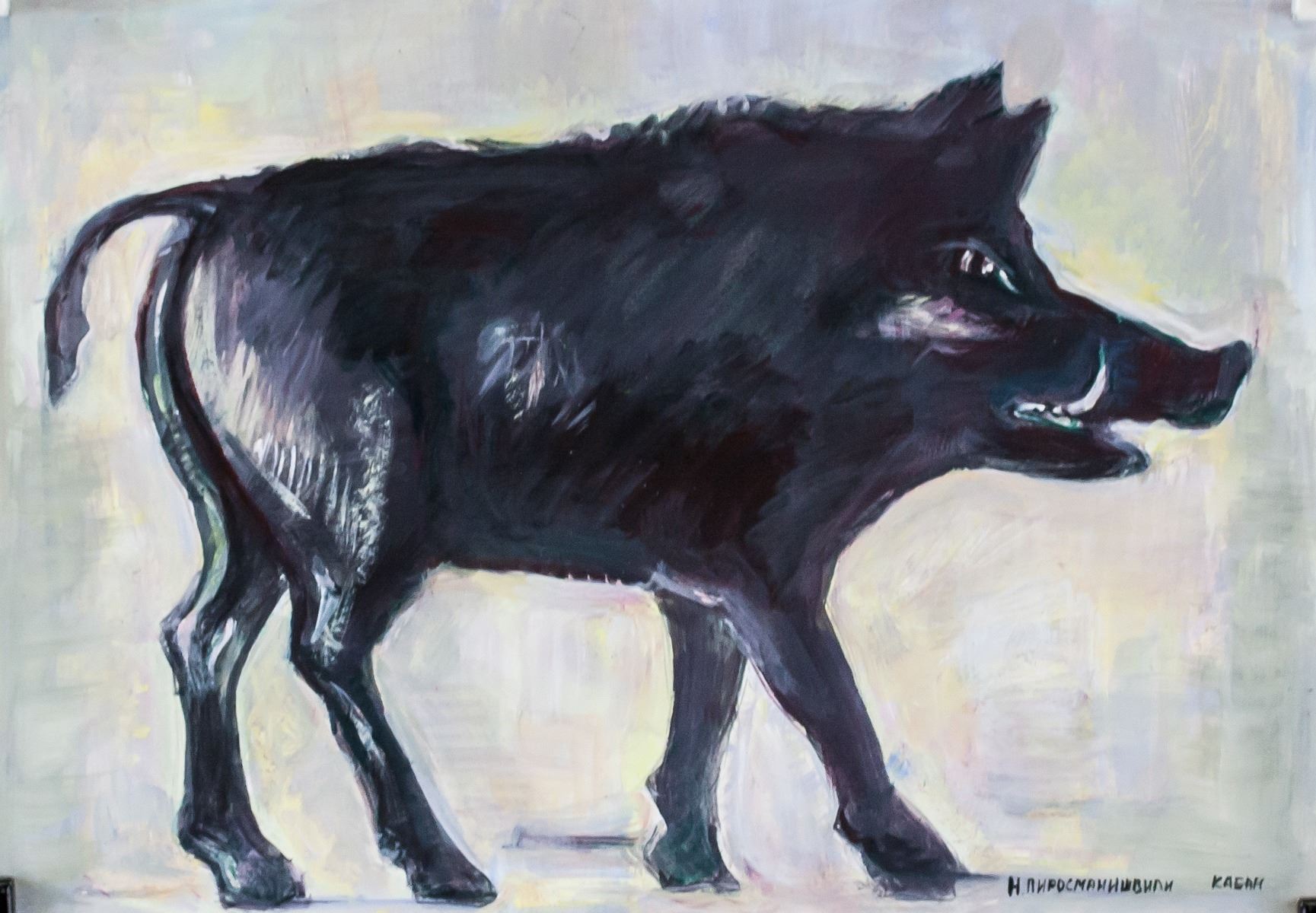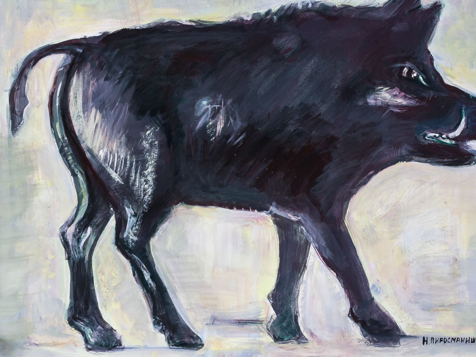 Gouache on paper. Featuring a portrait of a hog. Signed in Cyrillic on the lower edge. Attributed to Niko Pirosmani (1862-1918, Georgian). 20.3 x 29.5 cm (8 x 11.5 in). PROVENANCE: Southern Ontario estate