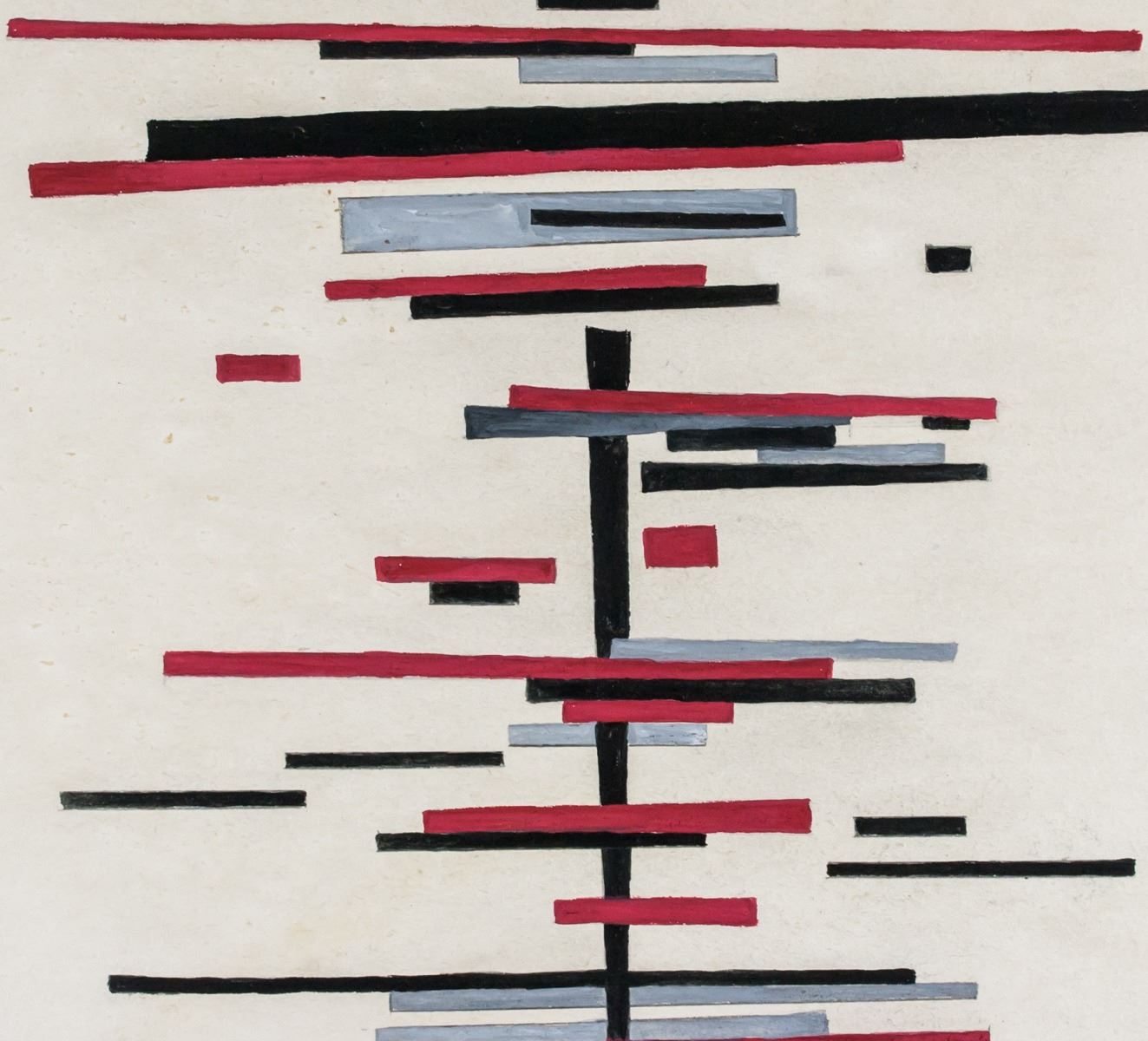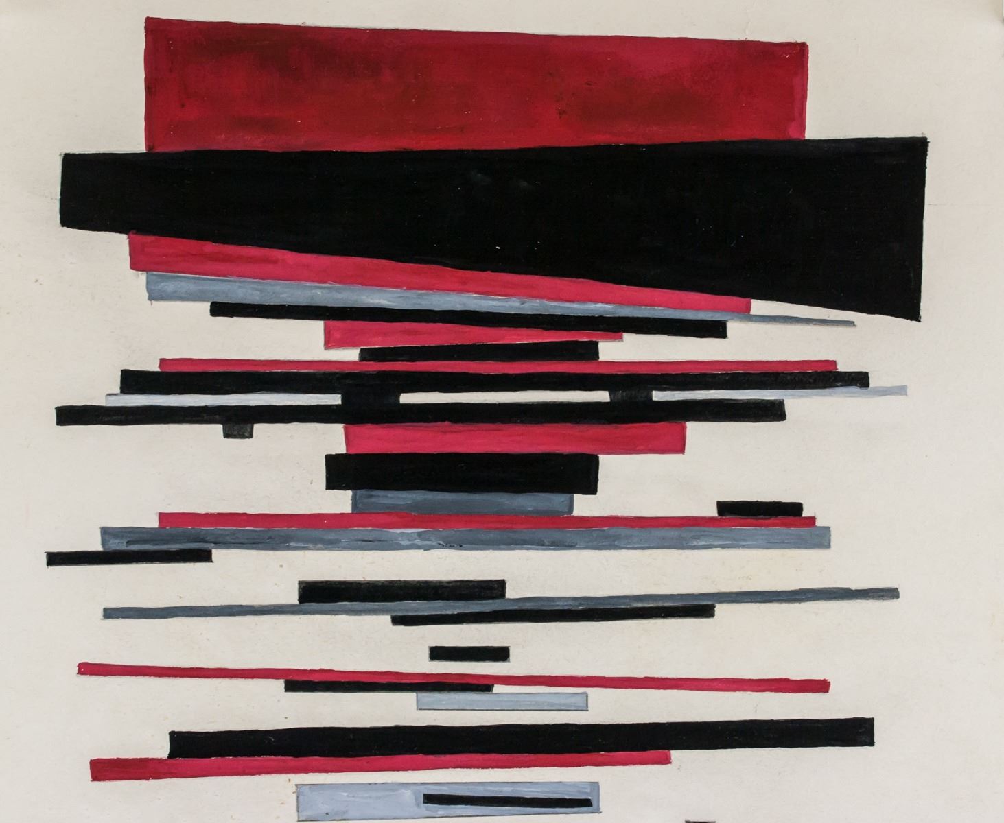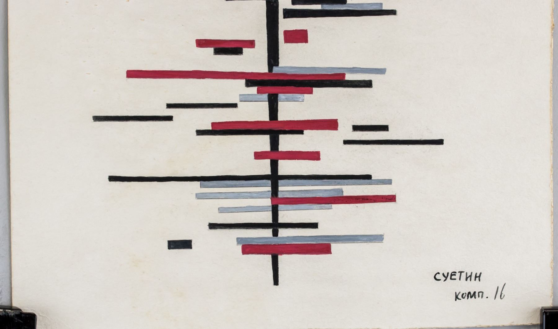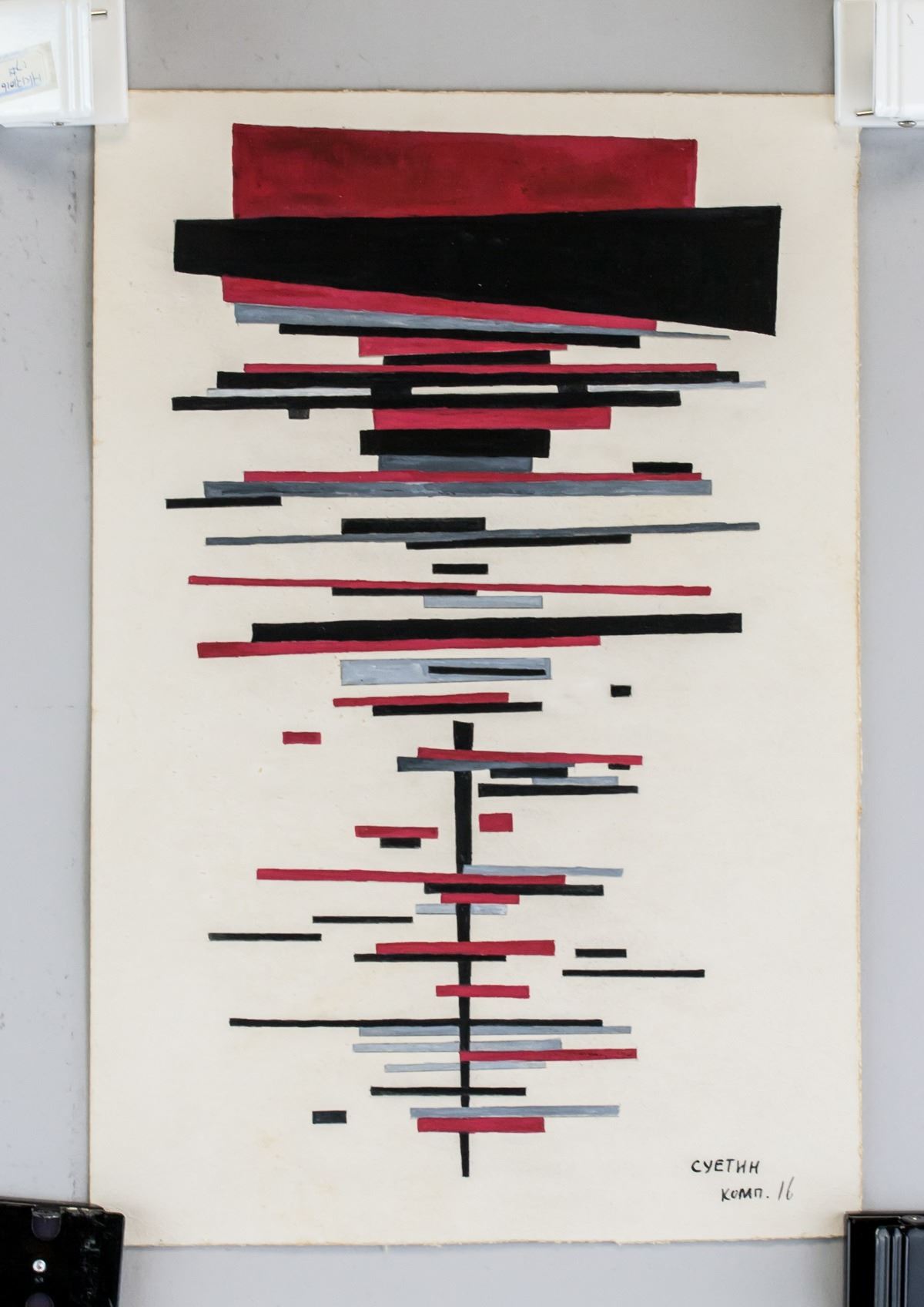 Gouache on paper. Featuring a suprematist composition. Signed on the lower right corner. Attributed to Nikolai Suetin (1897-1954, Russian). 33 x 22 cm (13.0 x 8.7 inches). PROVENANCE: Southern Ontario estate