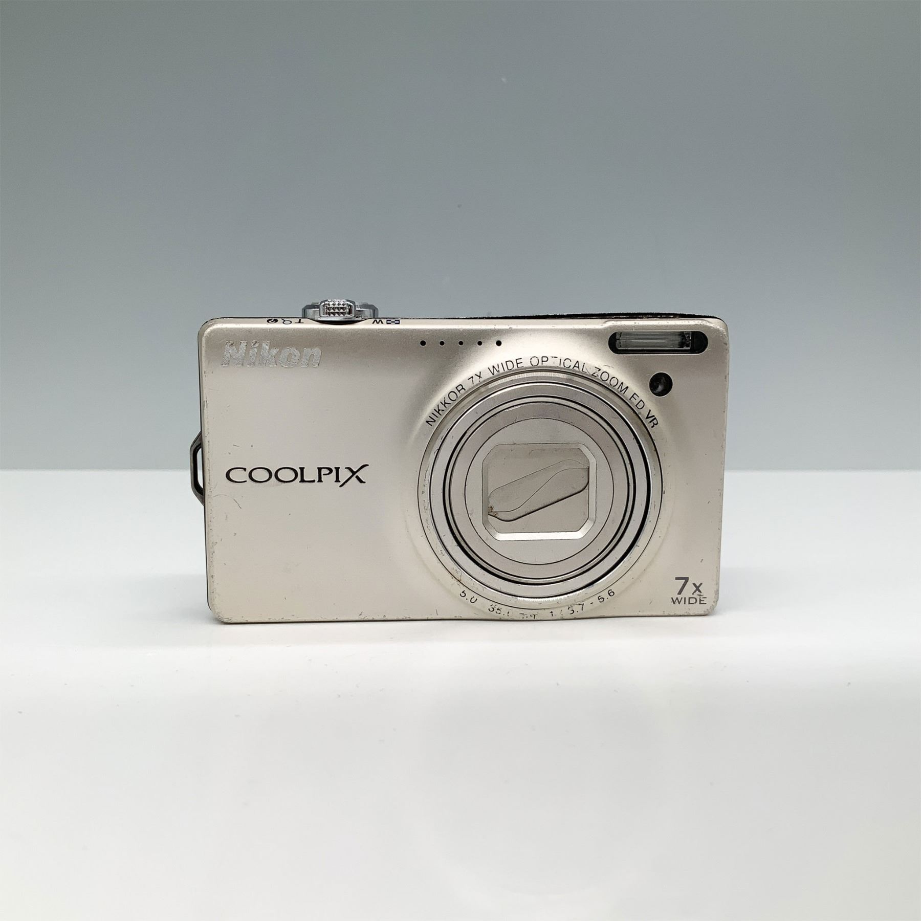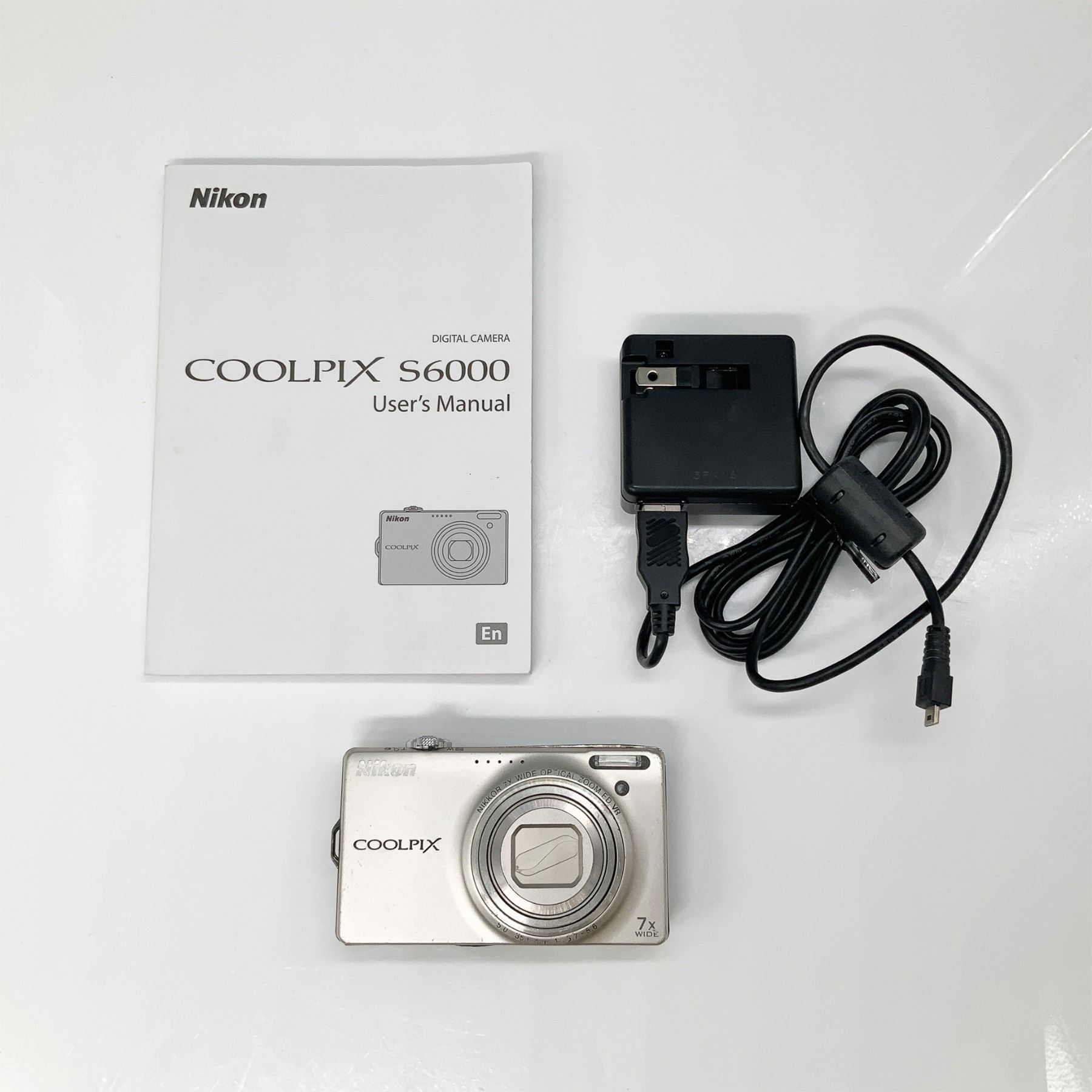 This Nikon Coolpix S6000 digital camera features a 14.2 megapixel resolution and a 7x wide optical zoom lens, providing high-quality images with ease. The camera offers quick response and HD movie capabilities. It comes with its original user's manual, quick start guide, charger, and cable.