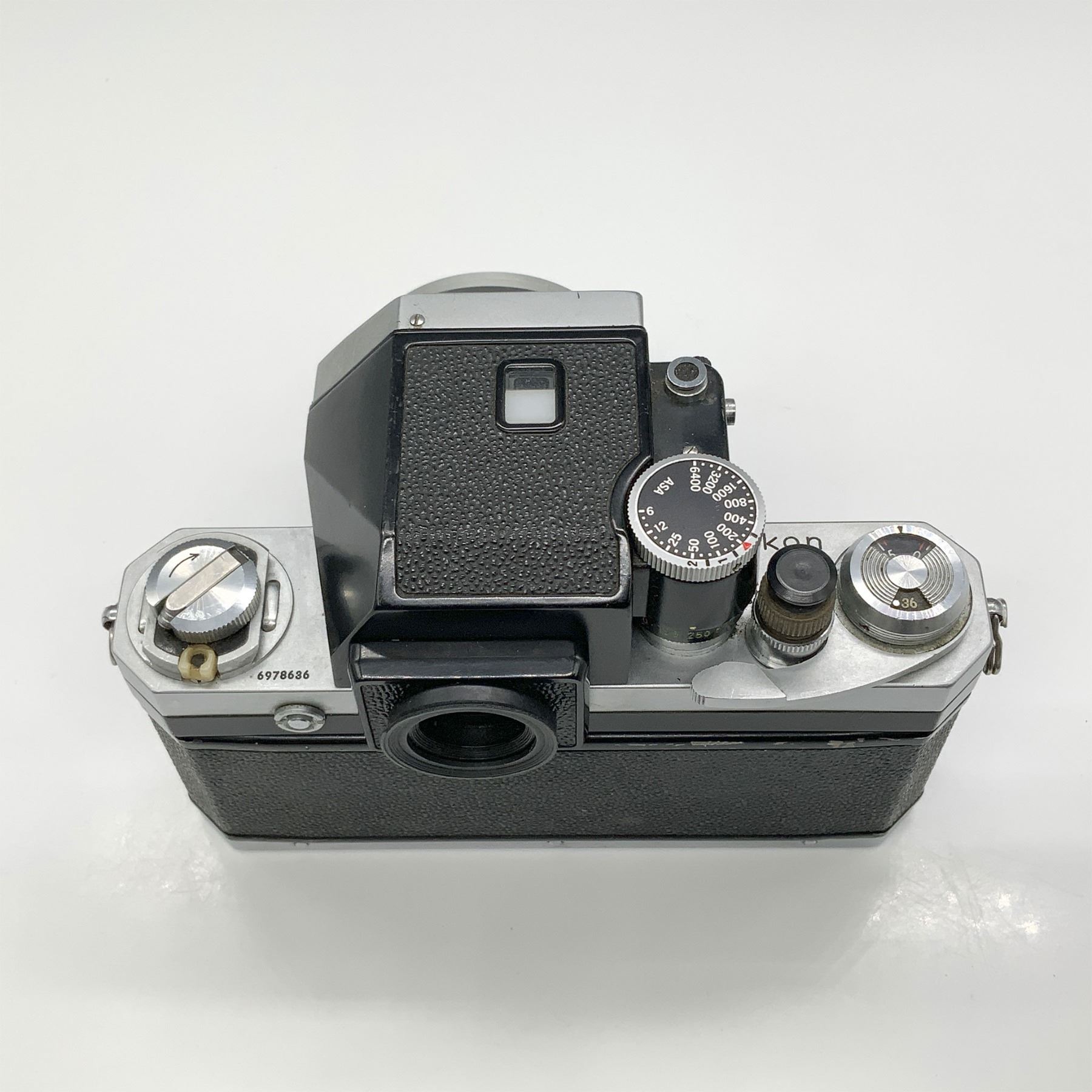 This Nikon F Photomic FTN camera is a vintage 35mm SLR model renowned for its precision engineering and reliability, emblematic of Nikon's legacy in professional photography. Introduced in 1968, the Nikon F Photomic FTN features a refined metering system, durable metal body construction, and compatibility with Nikon's legendary F-mount lenses. Included is the Nikkor-S Auto 50mm f/1.4 lens, known for its sharp optics and wide aperture, perfect for low-light photography. The Nikon F series, Nikon's first single-lens reflex (SLR) cameras, set the standard for professional 35mm photography. Its modular design allowed photographers to customize the camera with interchangeable viewfinders and focusing screens, enhancing its versatility. Nikon's commitment to innovation made the F series a favorite among photojournalists and enthusiasts alike. Serial number: 6978636.