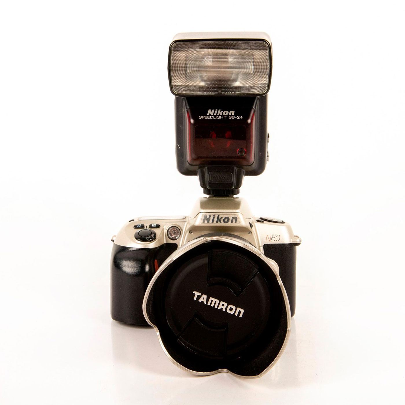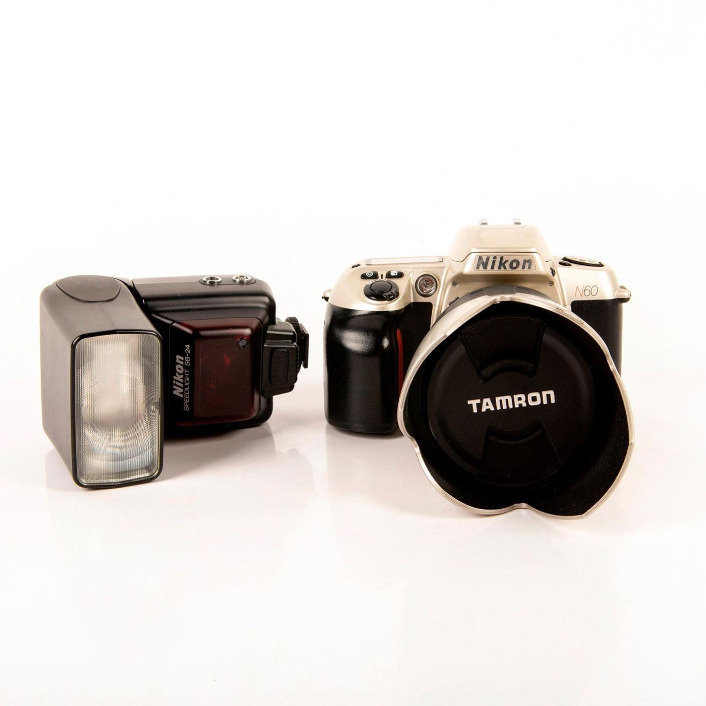Includes a NIKON N60 with TAMRON lens AF 28-200 f/3.8-5.6mm with silver lens shade. Comes with a NIKON SPEEDLIGHT SB-24. Cameras and Photographica