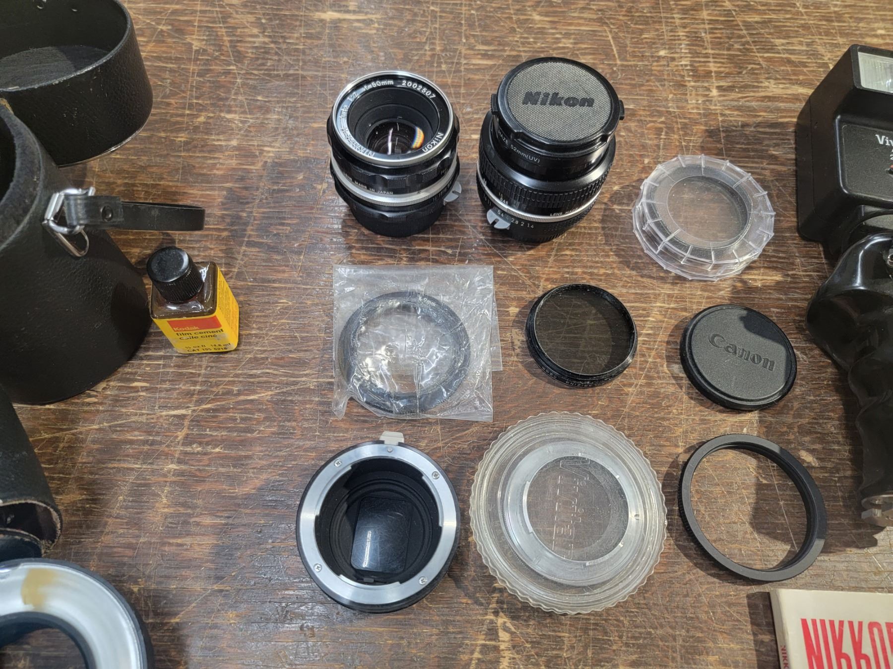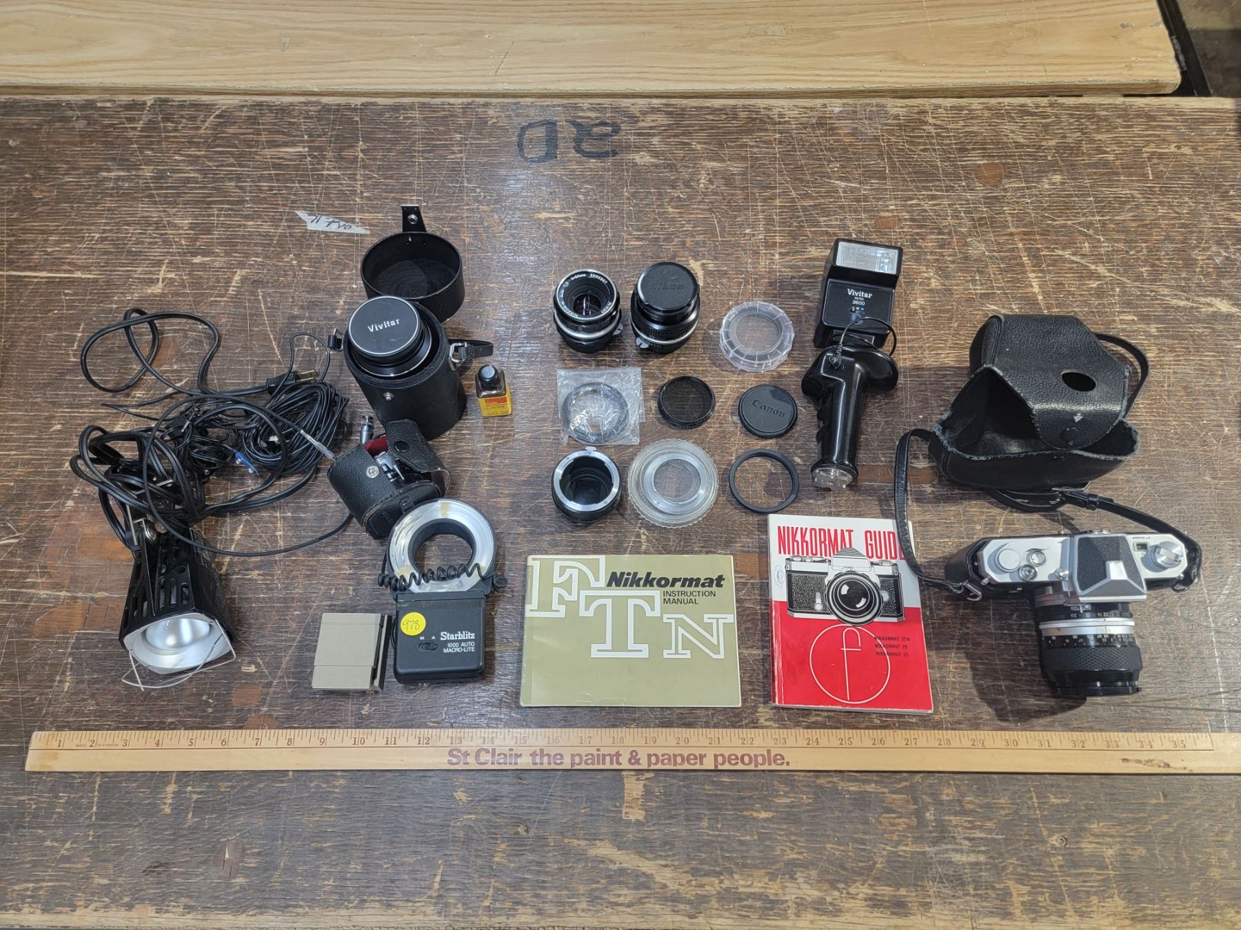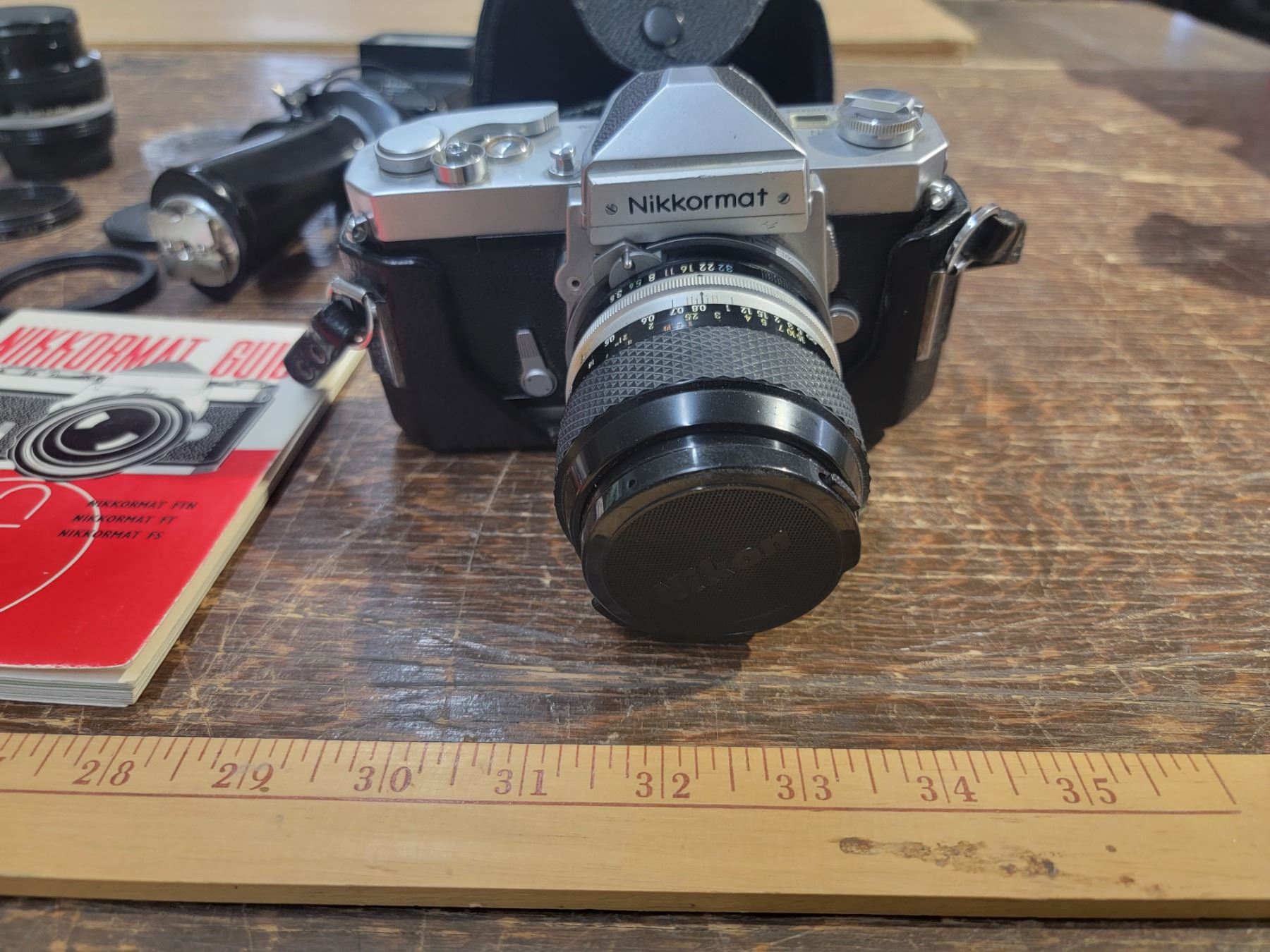 Nikon Nickermatt 35 mm Camera. Model FTN, different lenses & instruction books included, use battery-V 625 PX, not included
