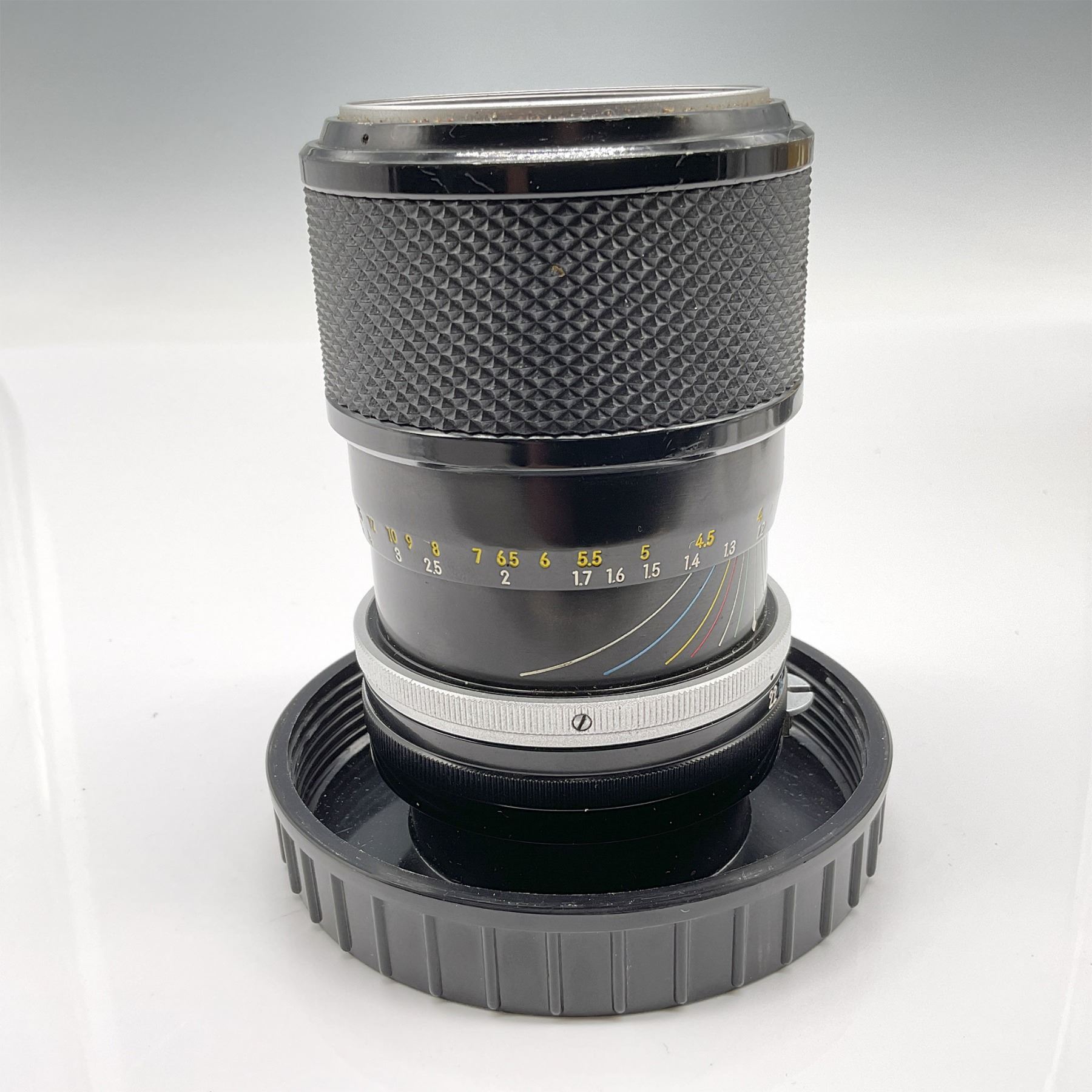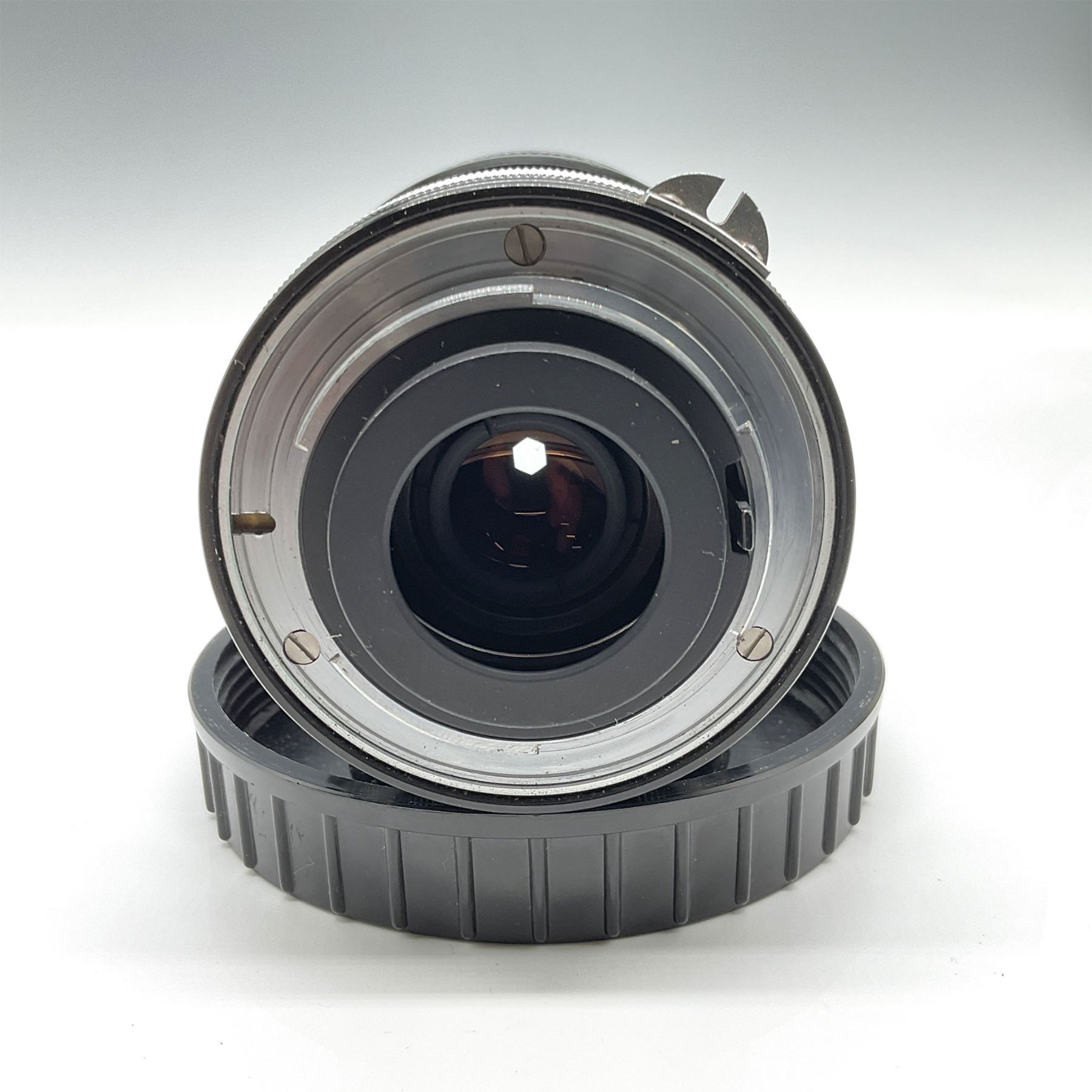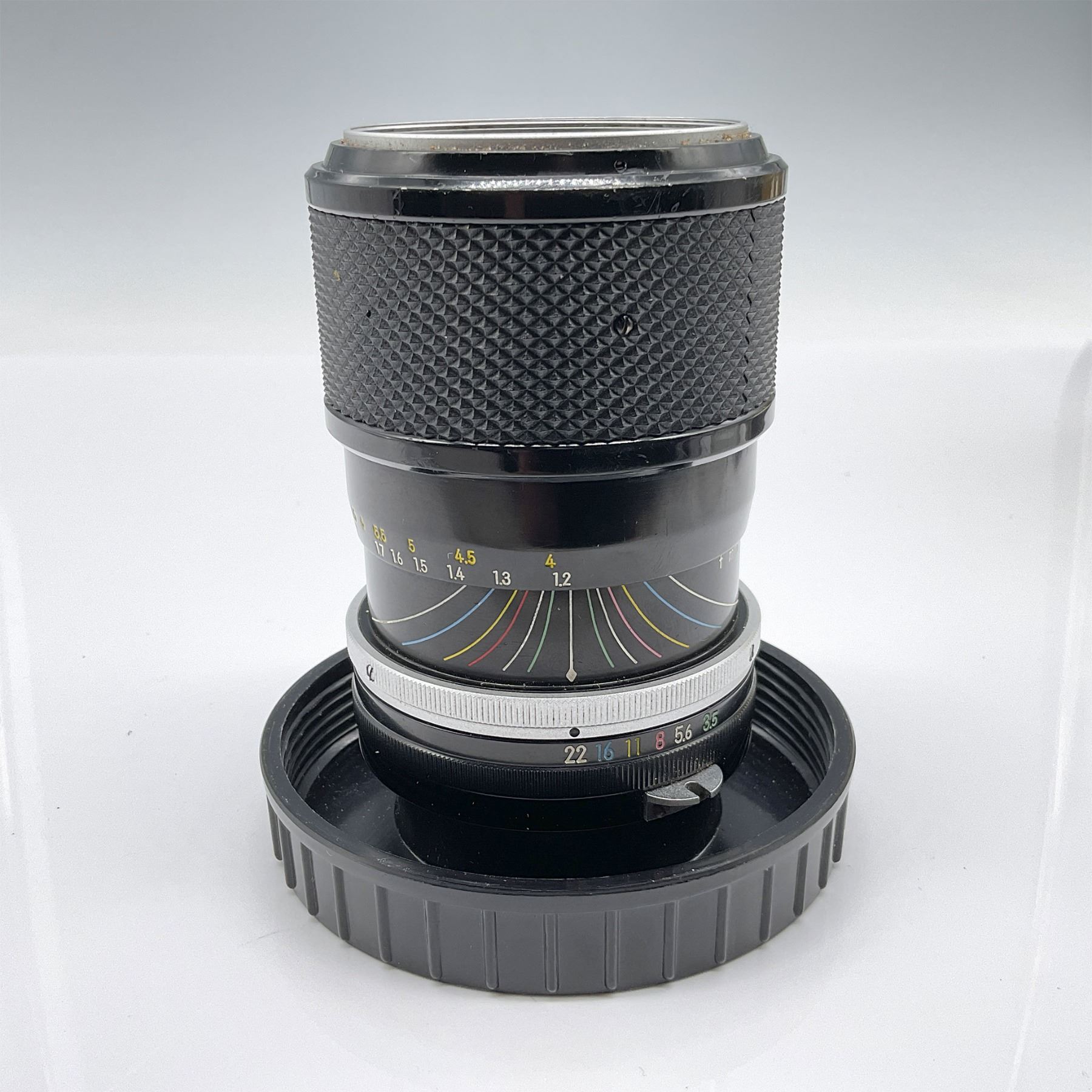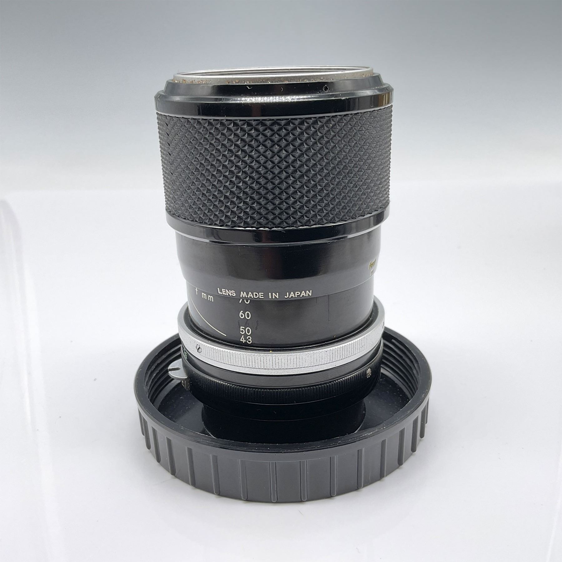Nikon Zoom-NIKKOR Auto Lens, 43-86mm, F:3.5, serial number 451060, manufactured by Nippon Kogaku Japan. This vintage lens features a metal construction and manual aperture control ranging from f/3.5 to f/22. The lot includes the original box, measuring 5.75"H, and the clear plastic display/storage case with a black screw-on base. The lens measures 3.75"H when fully extended. This classic Nikon lens is ideal for collectors or photography enthusiasts seeking vintage optics.