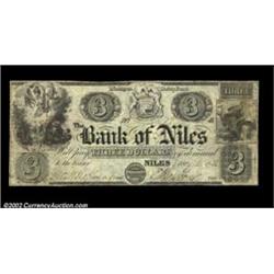 Niles, MI- The Bank of Niles $3 Jan. 1, 1838 G6 Bowen 3An attractive $3 example. Very Fine, with one