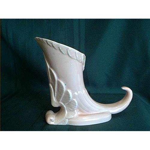 Cornucopia vase is made by Niloak and the color is pink. This vase is marked "Niloak USA 1945" and is in very good condition with no chips or cracks. It measures 7.5 inches wide and 7 inches high.